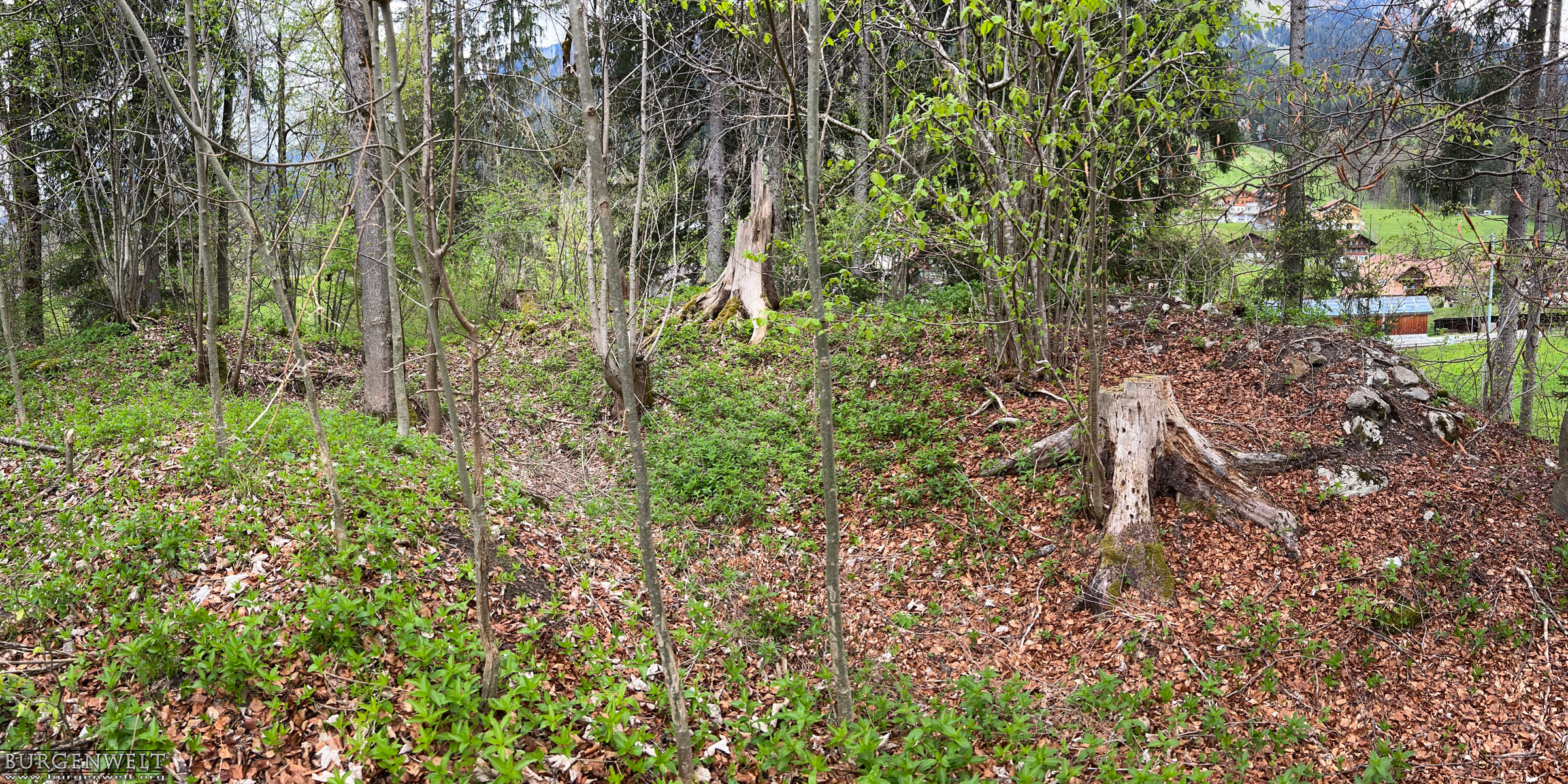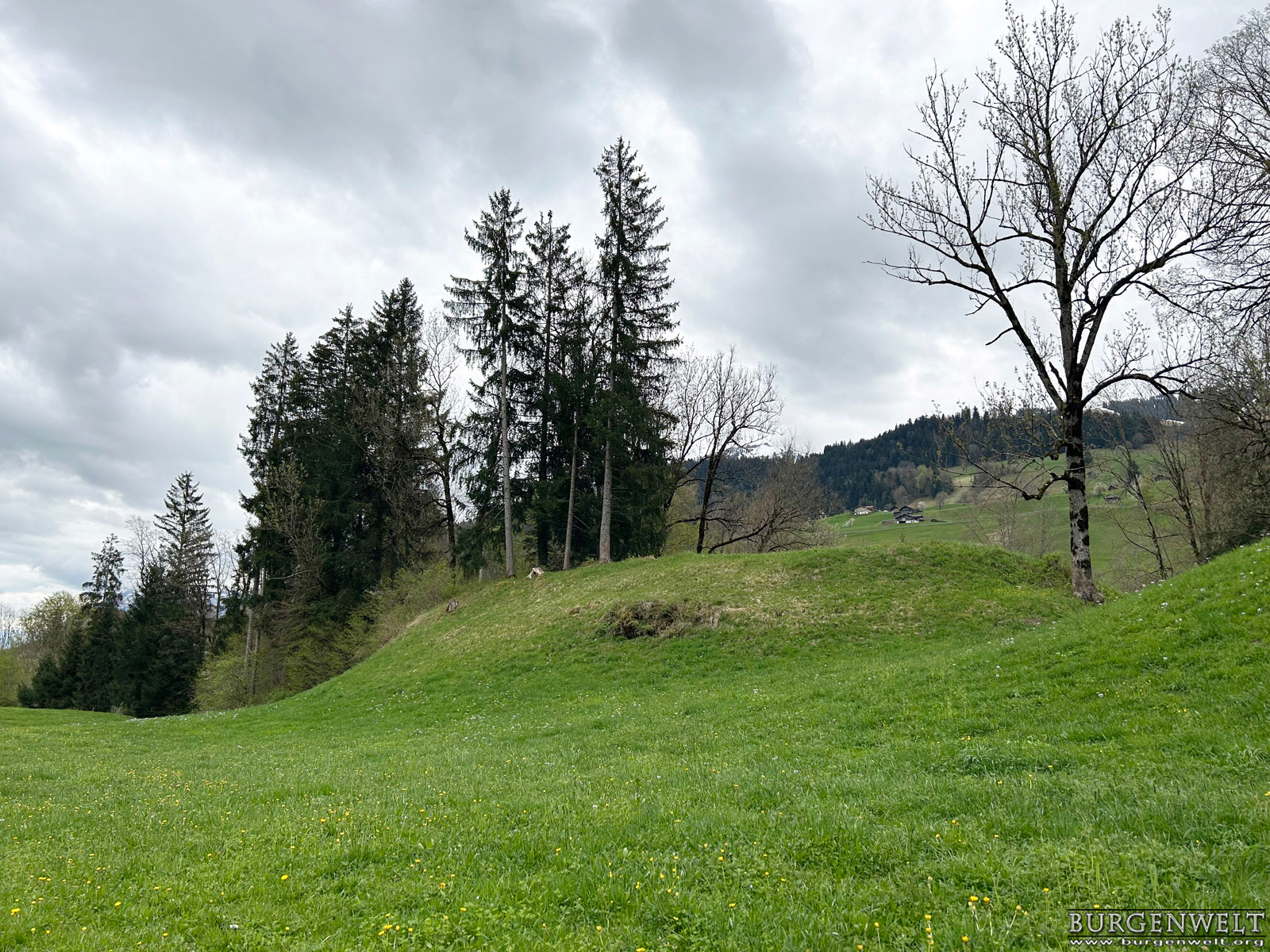 Zweiteilige Burganlage auf einer Anhöhe zwischen dem Dorf Oberwil im Simmental und der Simme. Sie wurde wohl um die Mitte des 13. Jhdts. erbaut, findet in den mittelalterlichen Quellen aber keine Erwähnung. Sichtbar sind drei Abschnittsgräben und eine etwa 18 Meter lange Megalith-Mauer auf der Nordseite der Kernburg.