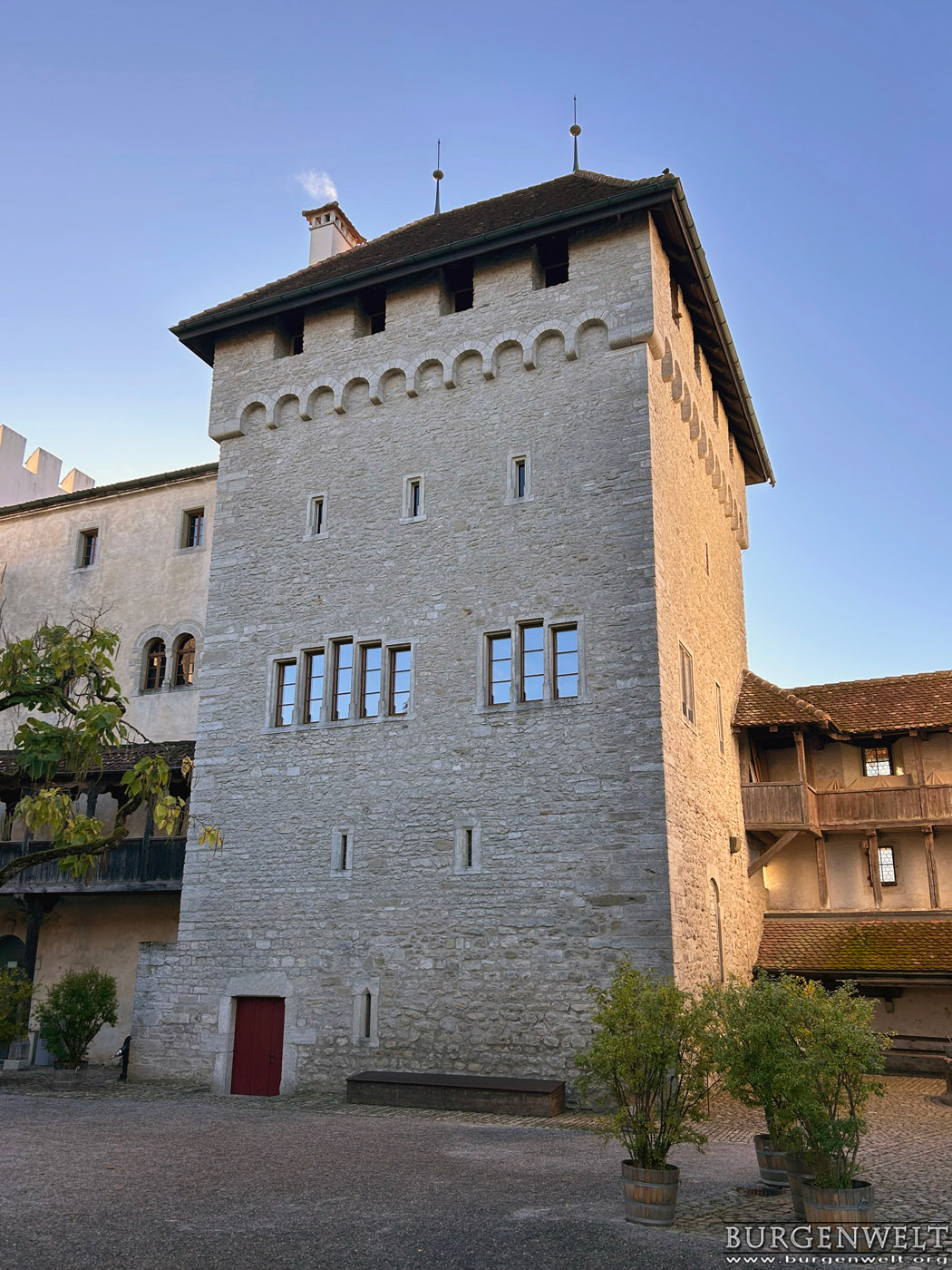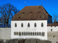 | Weitläufige, historisch bedeutsame Höhenburg auf felsigem Hügelzug über der Stadt Lenzburg. Die Anlage wurde über die Jahrhunderte mehrfach umgestaltet, sie beherbergt heute ein Schlossmuseum und Räume für kulturelle Veranstaltungen. Im Hof werden auch Mittelaltermärkte abgehalten. Die zwei grossen Säle im Ritterhaus können für Privatanlässe gemietet werden. | |||||||||||||||||||||||||||||||