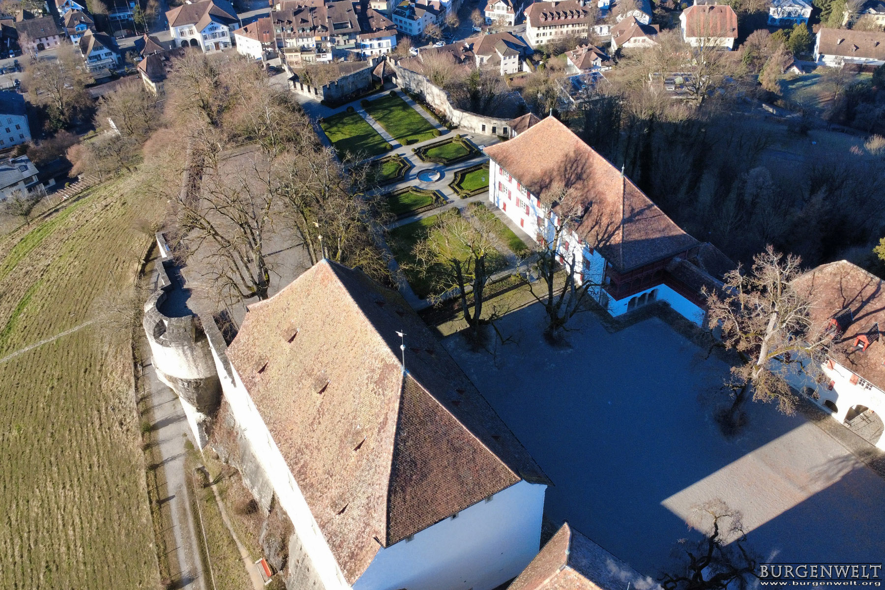 | Weitläufige, historisch bedeutsame Höhenburg auf felsigem Hügelzug über der Stadt Lenzburg. Die Anlage wurde über die Jahrhunderte mehrfach umgestaltet, sie beherbergt heute ein Schlossmuseum und Räume für kulturelle Veranstaltungen. Im Hof werden auch Mittelaltermärkte abgehalten. Die zwei grossen Säle im Ritterhaus können für Privatanlässe gemietet werden. | |||||||||||||||||||||||||||||||
