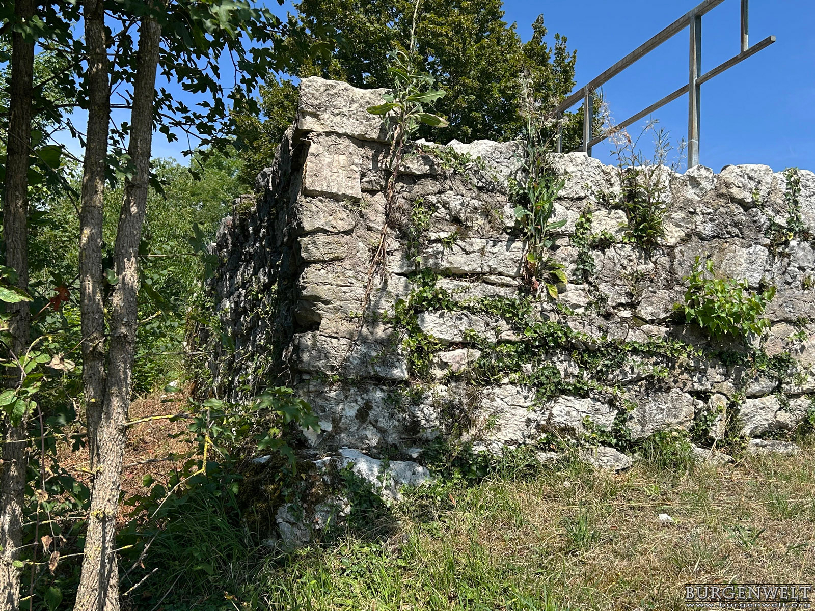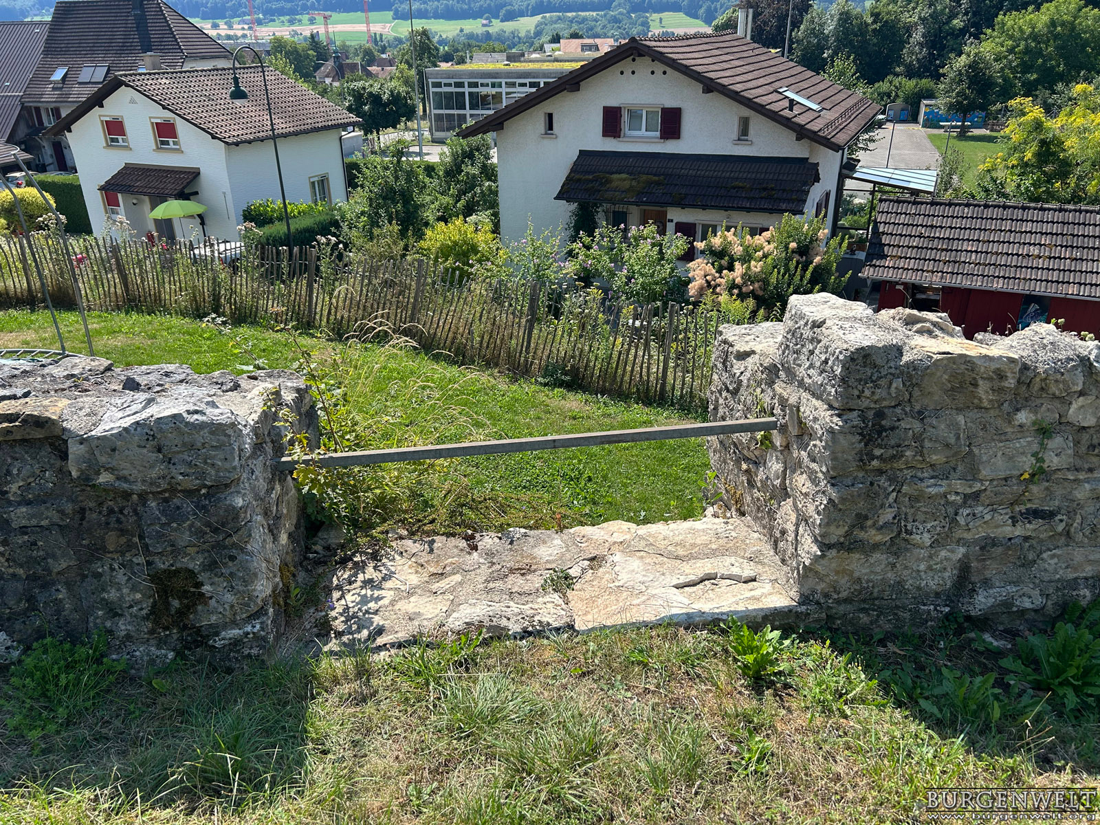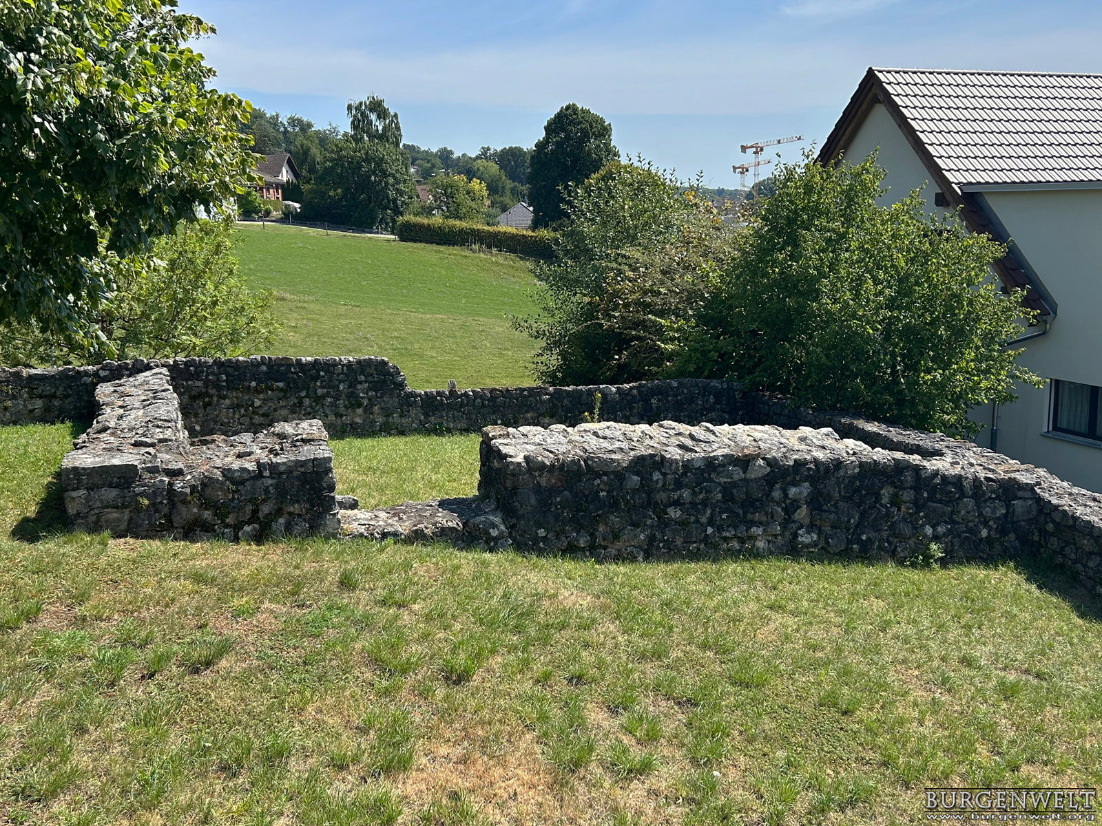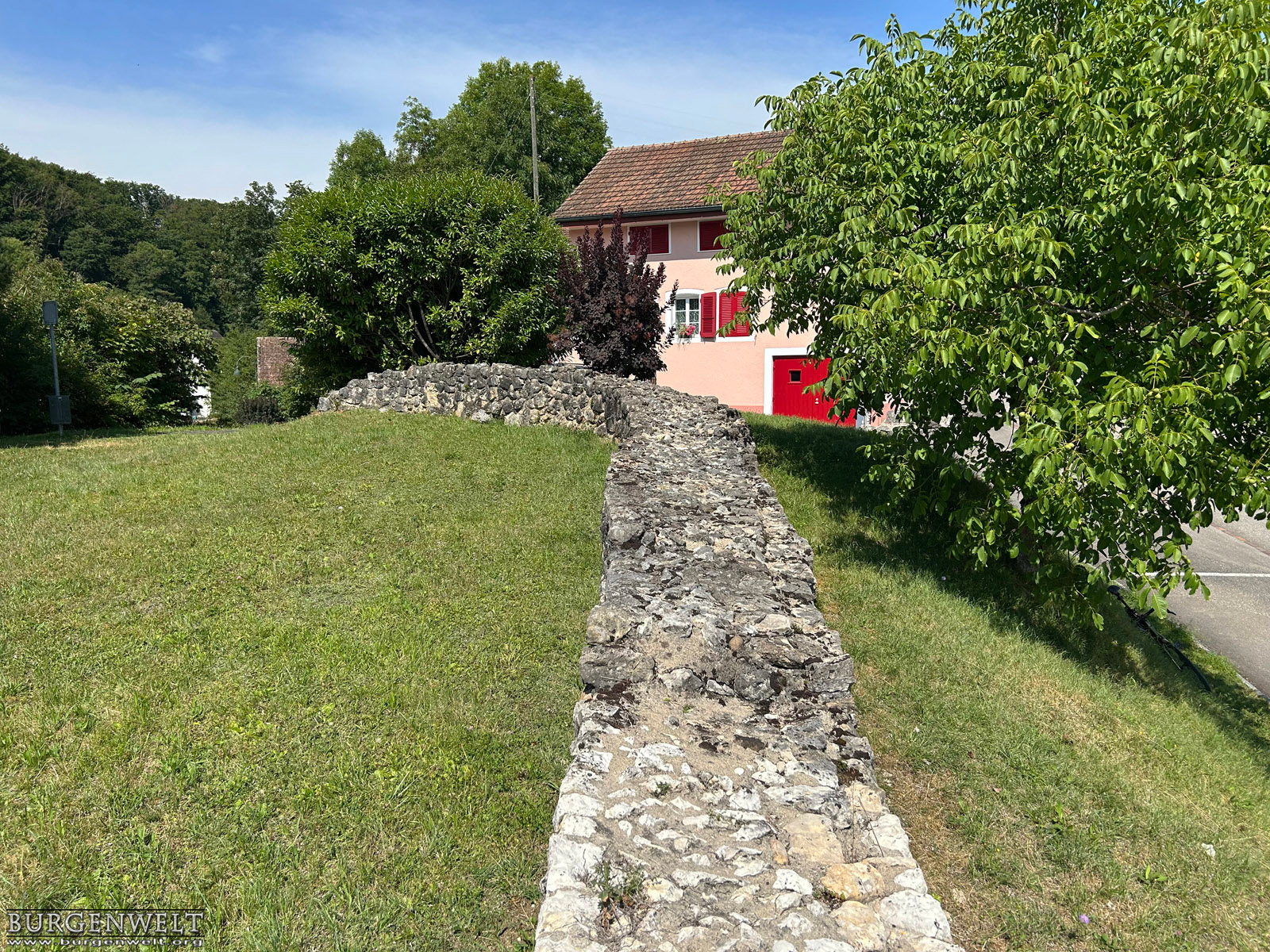 | Ruine einer sehr frühen Steinburg auf dem niedrigen Felsrücken «Büntenrain» über dem Dorf Rickenbach. Sichtbar sind die konservierten Grundmauern des Wohnturms, eines Pferdestalls und der Ringmauer. Die Anlage wurde sehr wahrscheilich im frühen 11. Jhdt durch die Grafen von Rheinfelden errichtet, nach 1080 unter der Herrschaft des Basler Bischofs umgebaut und bald nach 1100 aufgegeben. | |||||||||||||||||||||||||||||||