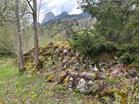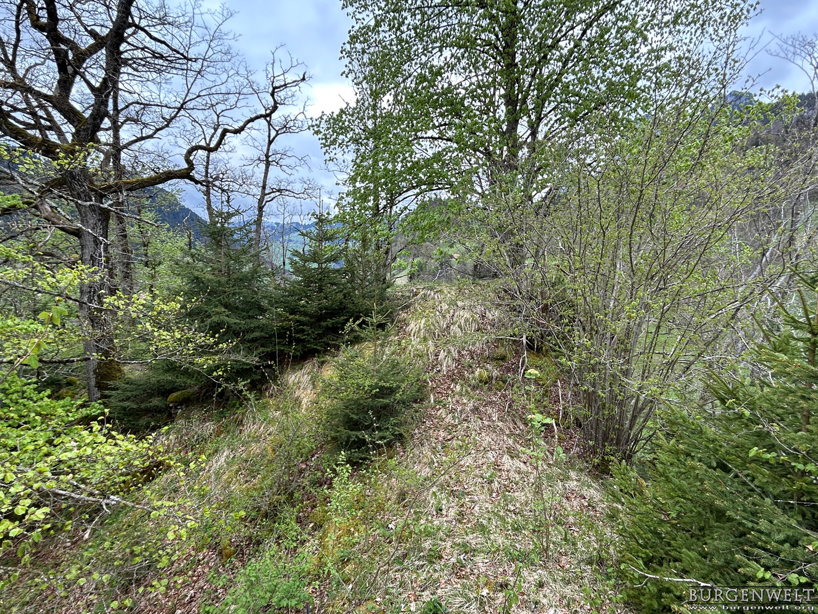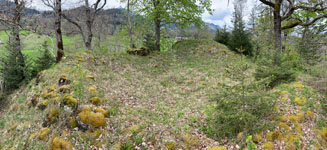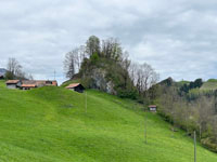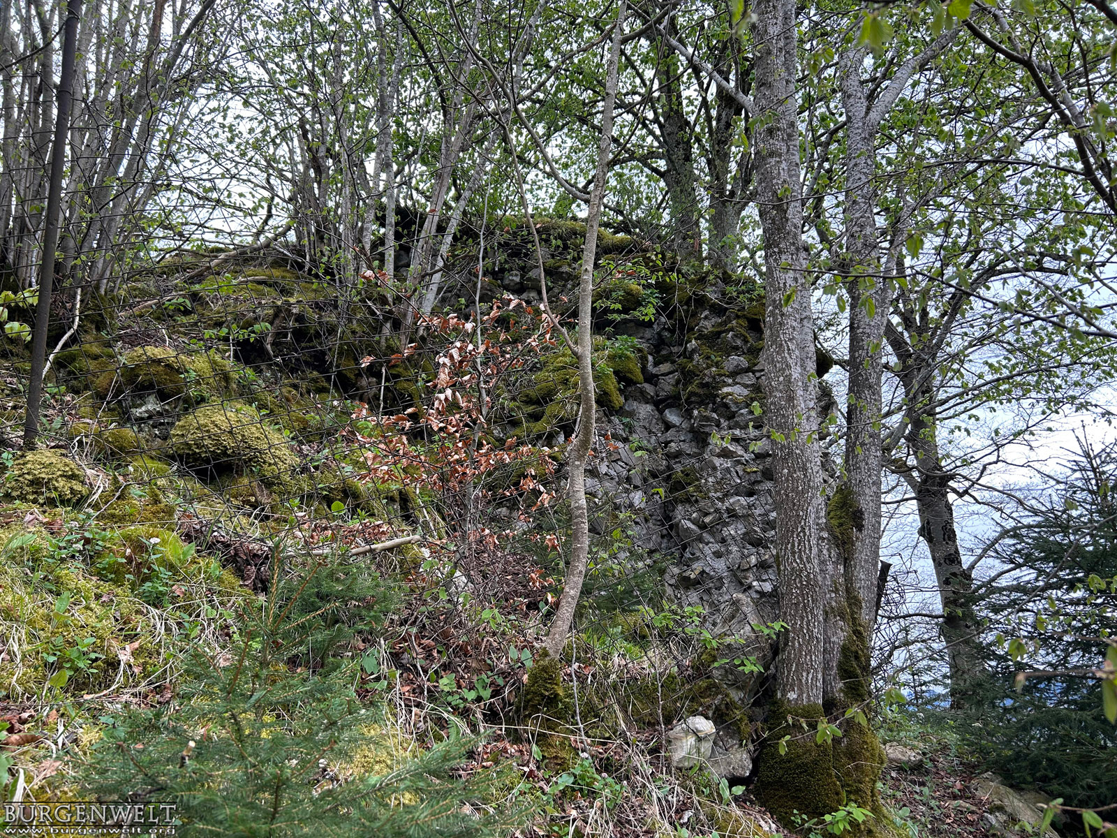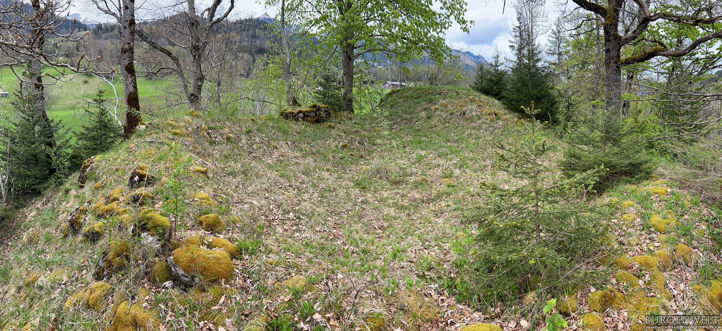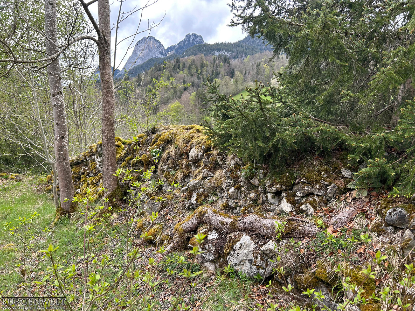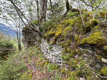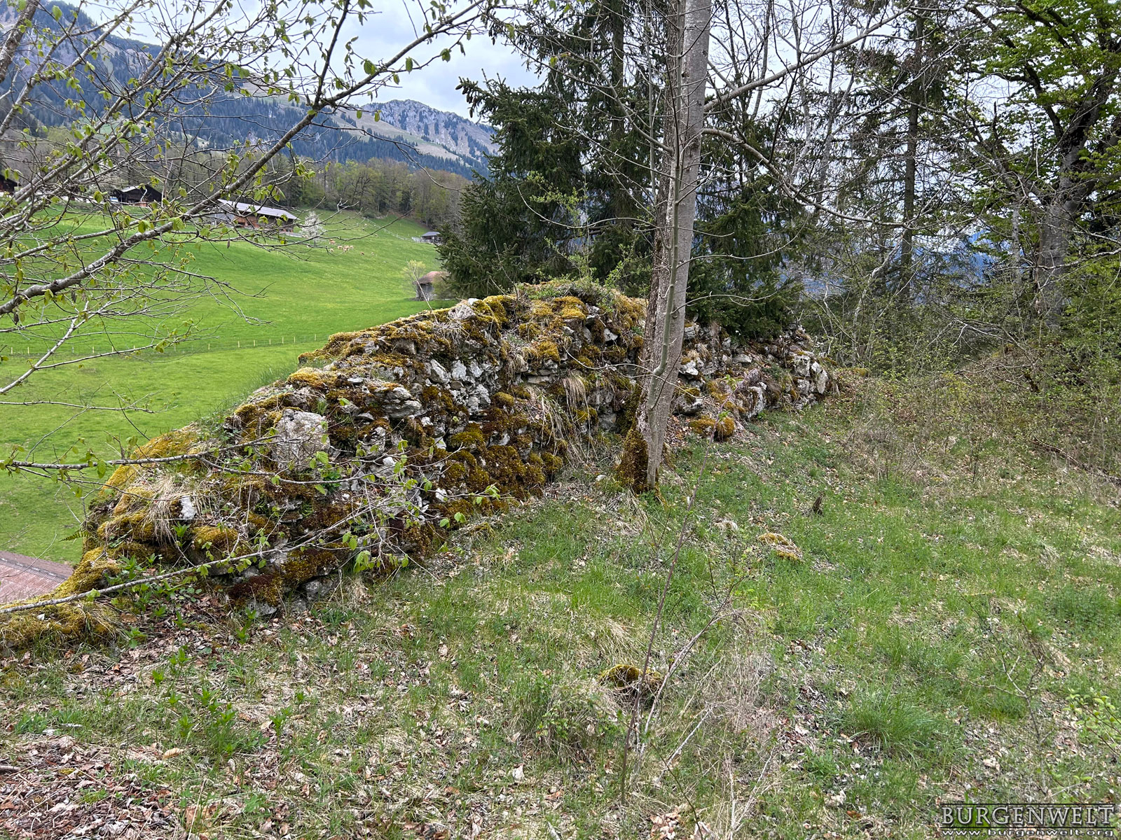 Genauso wie die weiter talaufwärts liegende Doppelburg Mannenberg war Simmenegg ursprünglich ein Reichslehen und diente der Überwachung des Verkehrs in Richtung Saanenland. Allerdings war diese Anlage vom Umfang har deutlich bescheidener. Die wenigen erhaltenen Mauerreste lassen auf eine kompakte Höhenburg schliessen, die den begrenzten Platz auf dem Felskamm über der Simme so gut wie möglich nutzte. Den Kern der Anlage bildete ein starker Wohnturm oder Bergfried, dessen Mauersockel heute vor allem auf der Nordwestseite noch gut sichtbar ist. An ihn schloss nordostseitig ein geräumiger Wohntrakt mit polygonalem Grundriss an – auch von diesem sind Teile der Nordwestmauer noch erhalten. Kleinere Plateaus an beiden Enden des Grats dürften benfalls in die Anlage miteinbezogen gewesen sein. Der Zugang zur Burg erfolgte wahrscheinlich über eine steile Rampe von Norden her und über ein Tor beim Turm, wo heute noch der Ansatz einer Traversenmauer erkennbar ist. Unter den Freiherren von Weissenburg und Brandis In den Quellen erstmals erwähnt wird das Reichslehen «Simiecca» im Jahr 1276. Wahrscheinlich befand es sich schon damals in den Händen der Freiherren von Weissenburg, gesichert ist das aber erst für das frühe 14. Jhdt. Um 1300 übergab Peter von Weissenburg einen Anteil an der Herrschaft Simmenegg als Unterlehen seinem Schwiegersohn, Thüring II. von Brandis. Letzterer schloss 1337 einen Burgrechtsvertrag mit der Stadt Bern, der auch Simmenegg umfasste. Erbstreit und Aufstand der Talleute Nach dem Aussterben der Weissenburger im Mannesstamm (1368) fiel Simmenegg ganz an die Brandis. Freiherr Thüring III. vererbte das Rechslehen 1374 seinem Neffen Rudolf III. von Aarburg, der sich den Besitz von Kaiser Karl IV. bestätigen liess. Dagegen wehrte sich jedoch Mangold von Brandis, der über seine Gemahlin Anna von Weissenburg ebenfalls Erbansprüche gelten machte. In der Folge besetzte er die Burg und belegte die Talleute mit neuen Abgaben. Dies führte 1378 zu einem Aufstand, worauf Bern schlichtend eingriff und Simmenegg wieder Rudolf von Aarburg zusprach. Dieser schloss 1385 einen neuen Burgrechtsvertrag mit der Aarestadt. Übergang an Bern und Zerfall 1391 entschloss sich Rudolf von Aarburg, Bern das Reichslehen Simmenegg für 2000 Pfund Silber zu verkaufen. Bern hatte für die Burg danach keine Verwendung mehr. Gemäss alten Abrechnungen blieb sie zwar noch einige Zeit bewohnt, wurde aber irgendwann im 15. Jhdt. aufgegeben. Die Herrschaft wurde der Kastlanei Zweisimmen zugeteilt, die von der Blankenburg aus verwaltet wurde. Simmenegg blieb dem Zerfall überlassen – daran hat sich bis heute nichts geändert.  |