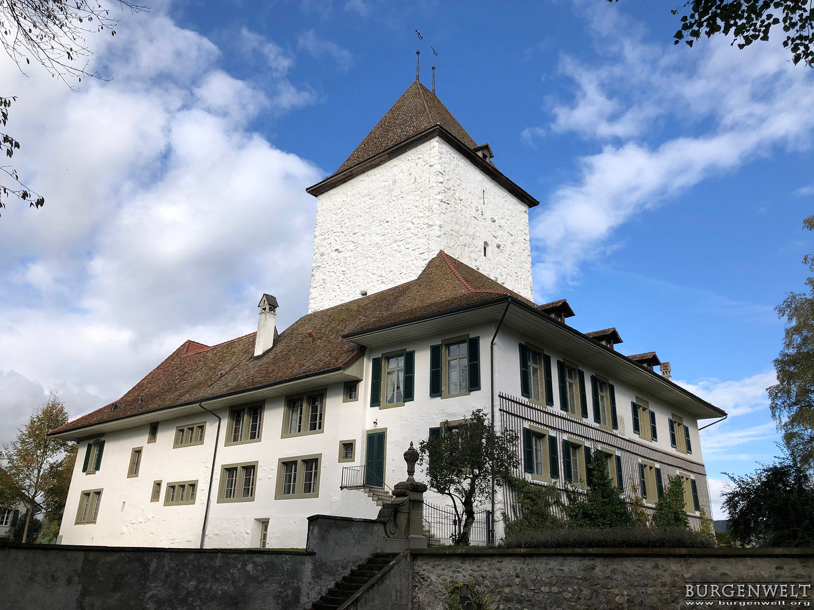 | Um einen gut erhaltenen Burgturm aus dem frühen 13. Jhdt. erbaute Schlossanlage über dem Dorf Schlosswil, 12 km südöstlich von Bern. Wahrscheinlich stand hier bereits im 12. Jhdt. der Wohnsitz der Freiherren von Wiler. Später gehörte die Anlage verschiedenen Adelsgeschlechtern, Berner Patrizierfamilien und ab 1812 dem Kanton Bern. Seit 2010 befindet sich Schloss Wil im Besitz einer privaten Stiftung und ist öfffentlich zugänglich. | |||||||||||||||||||||||||||||||