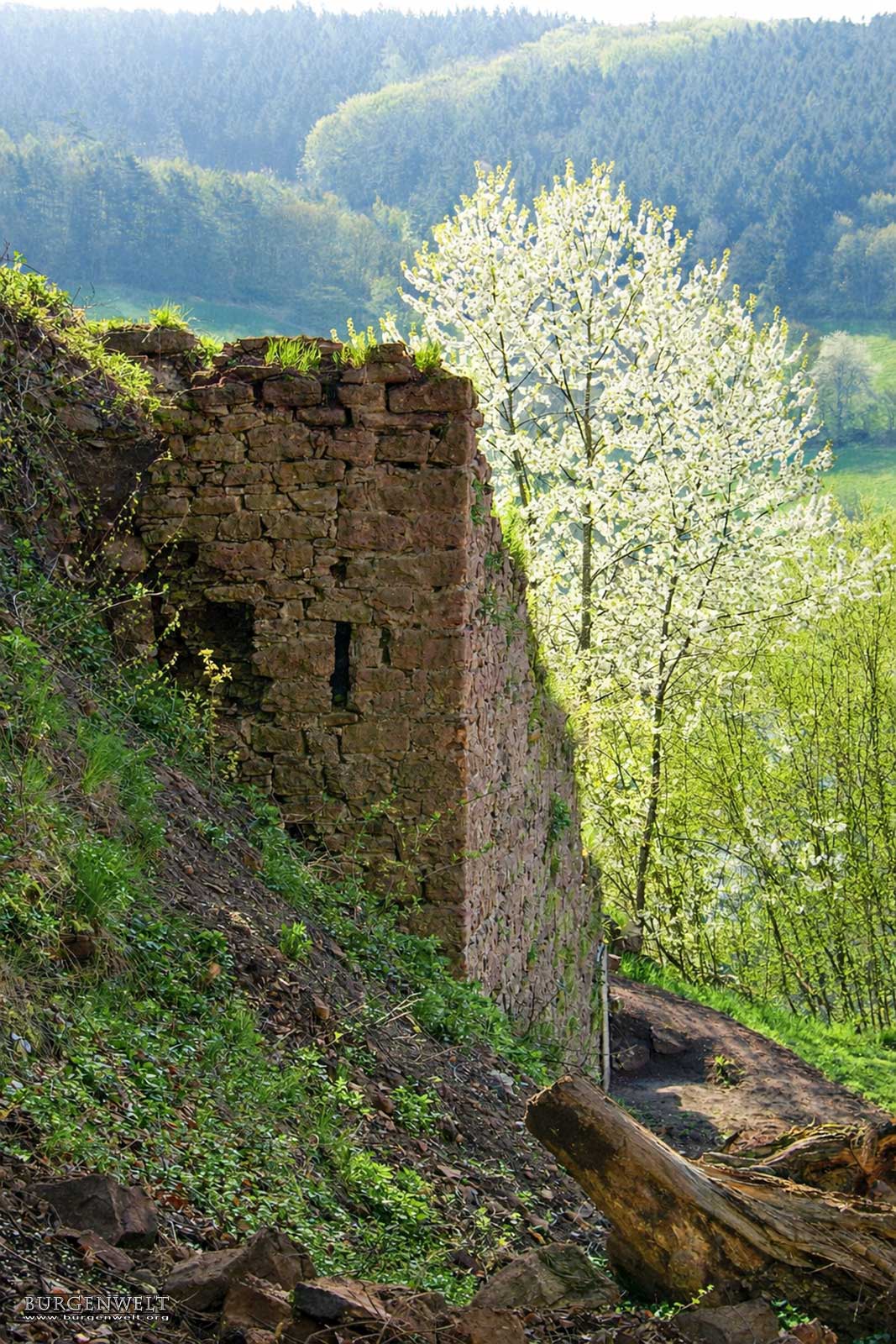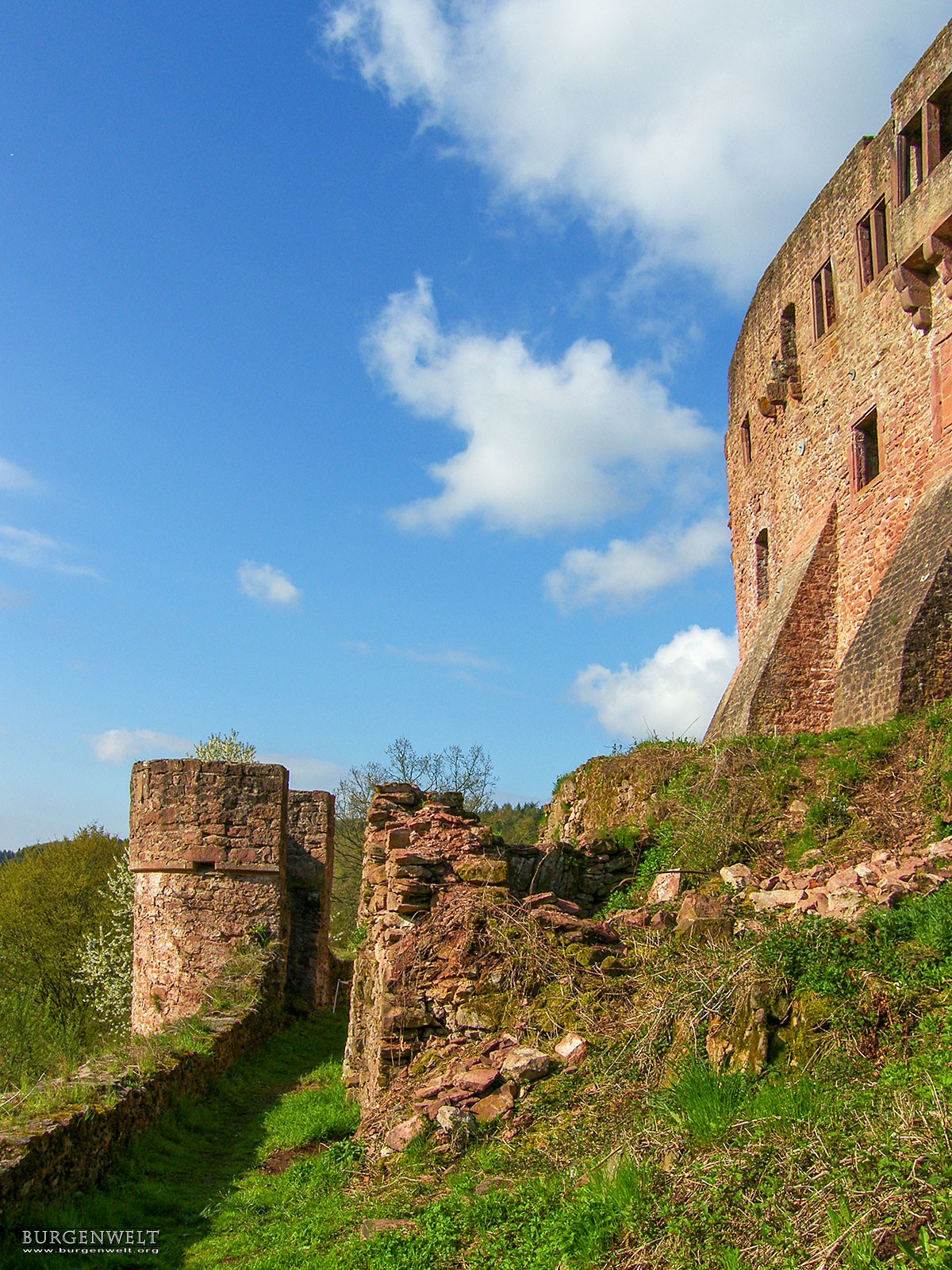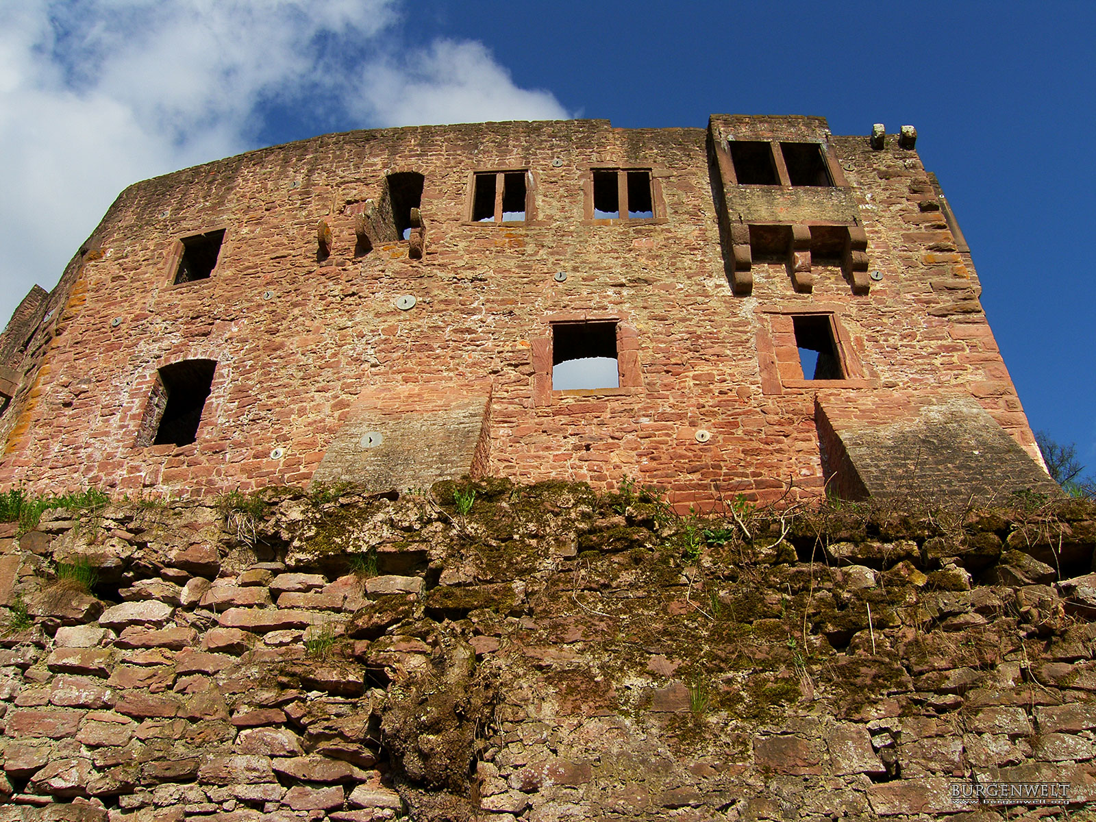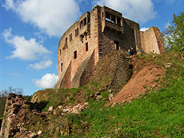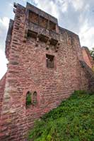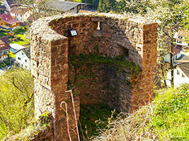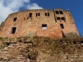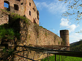 Die Sperrburg entstand während der Aufteilung der Besitzungen nach der Auflösung der Reichsabtei Kloster Lorsch an derer von Pfalzgrafen, Schenk von Erbach und Kurmainz. Die Burg ist vom Hang mit einem tiefen Halsgraben vom Berg abgetrennt. Die Schildmauer umschliesst zusammen mit der Ringmauer die Hauptburg. Ein doppelter Zwinger sichert die Burg zum Tal. Die Burg wurde immer wieder umgebaut und erweitert. Als Erstes soll ein Turm, die spätere Kapelle, errichtet worden sein. |