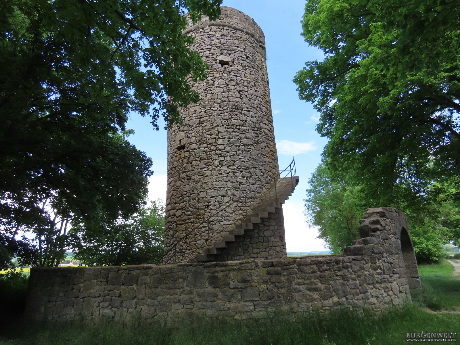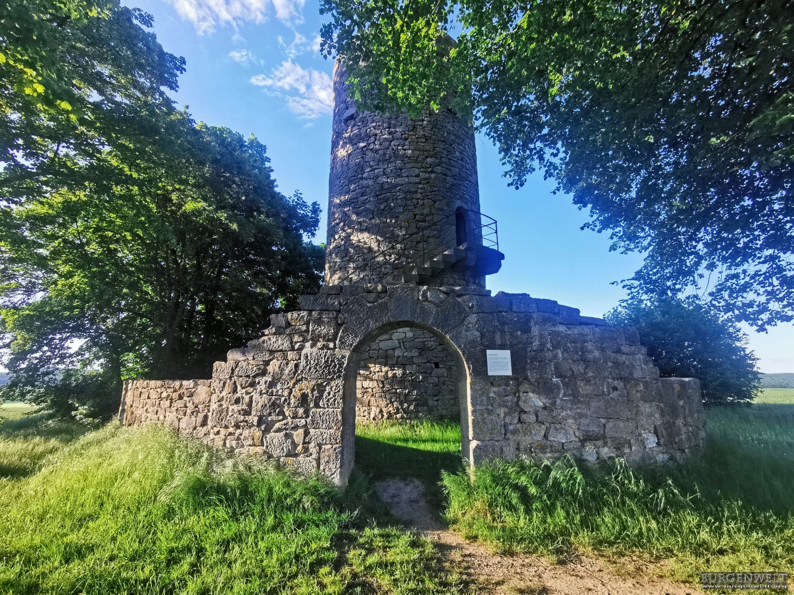 Vom Ortszentrum Mellrichstadt aus verlassen Sie die Stadt in nördlicher Richtung und folgen der B285 (ehemals B19). Nach etwa zwei Kilometern erreichen Sie den Galgenberg. Der Galgenturm befindet sich dort auf einer leichten Anhöhe in der Nähe der Kreuzung mit der Staatsstraße 2445 und ist bereits von der Straße aus gut sichtbar. In der Umgebung stehen Parkmöglichkeiten zur Verfügung. |