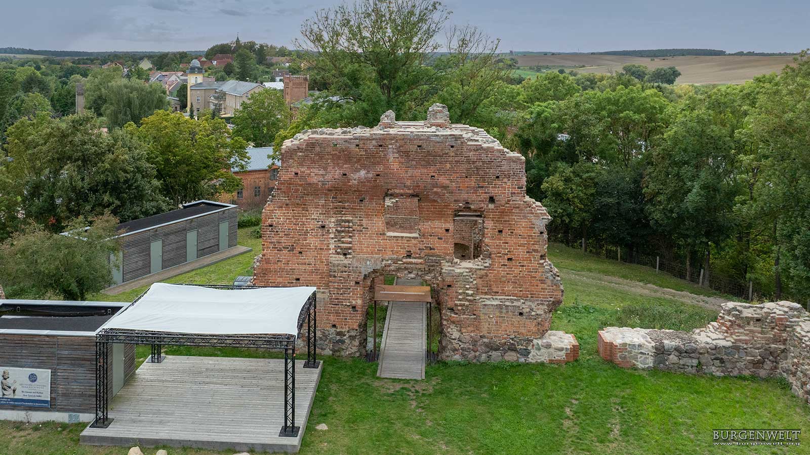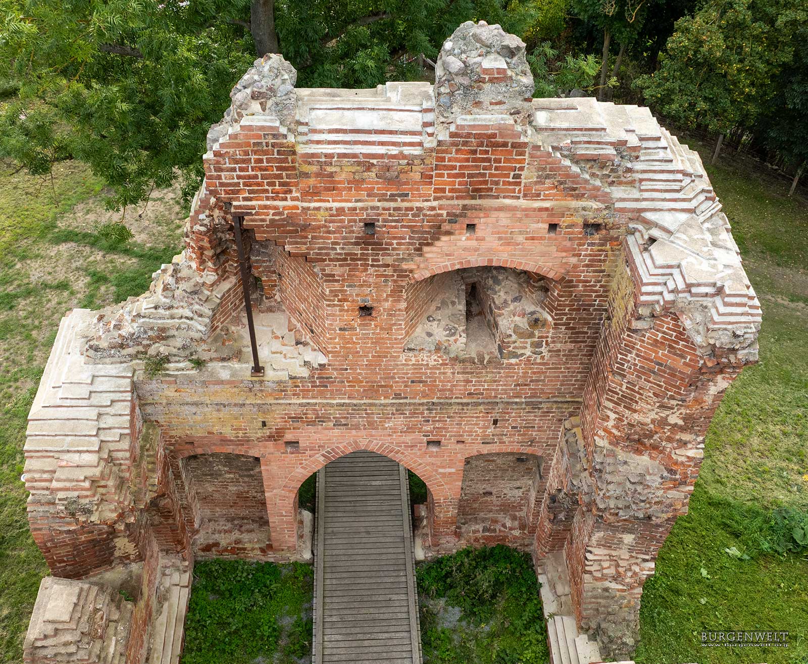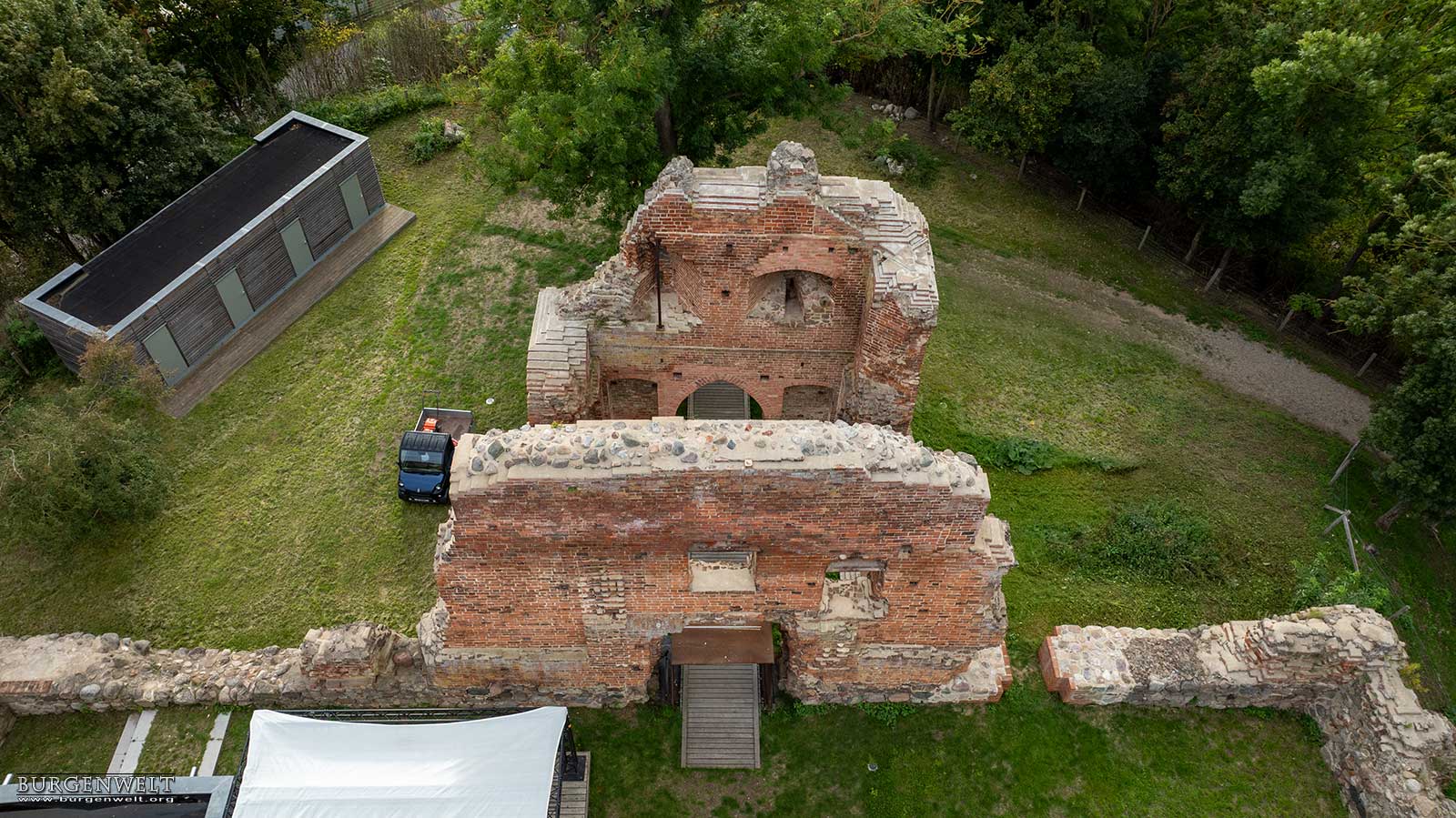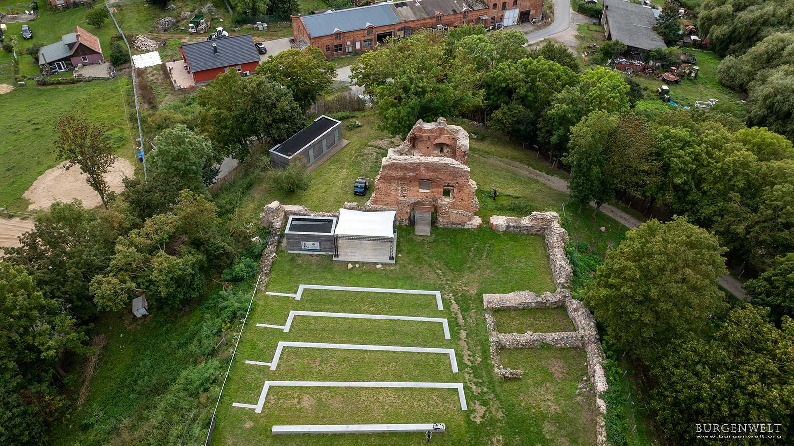 Die Feldsteinfundamente der Wohngebäude und der Ringmauer sind erhalten geblieben, sowie Teile des Wallgrabens. Das Torhaus stammt aus der Mitte des 15. Jahrhunderts. Im Norden und Süden Fundamente von Wohn- und Wirtschaftsgebäuden.