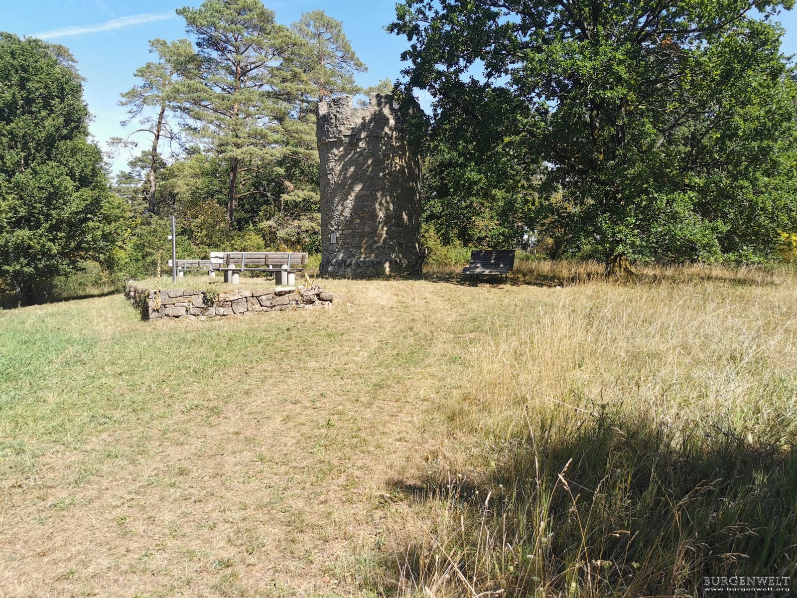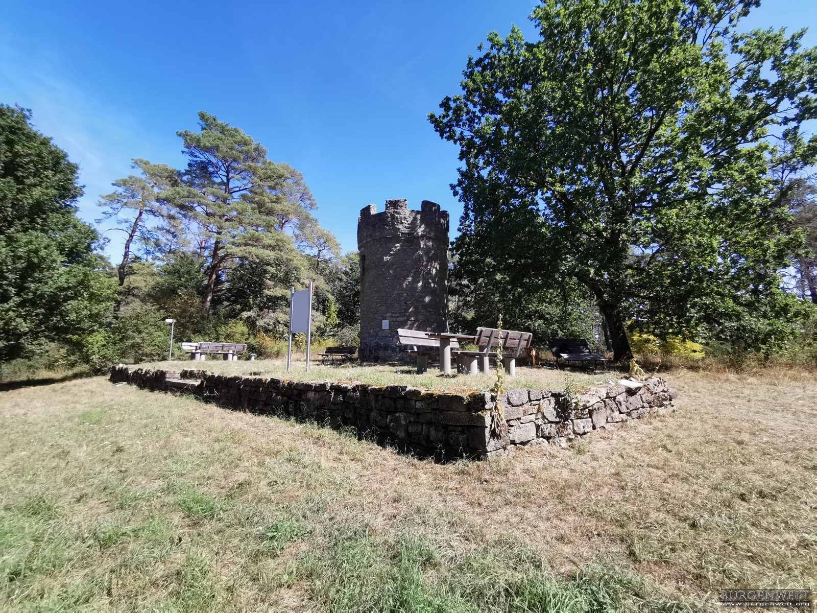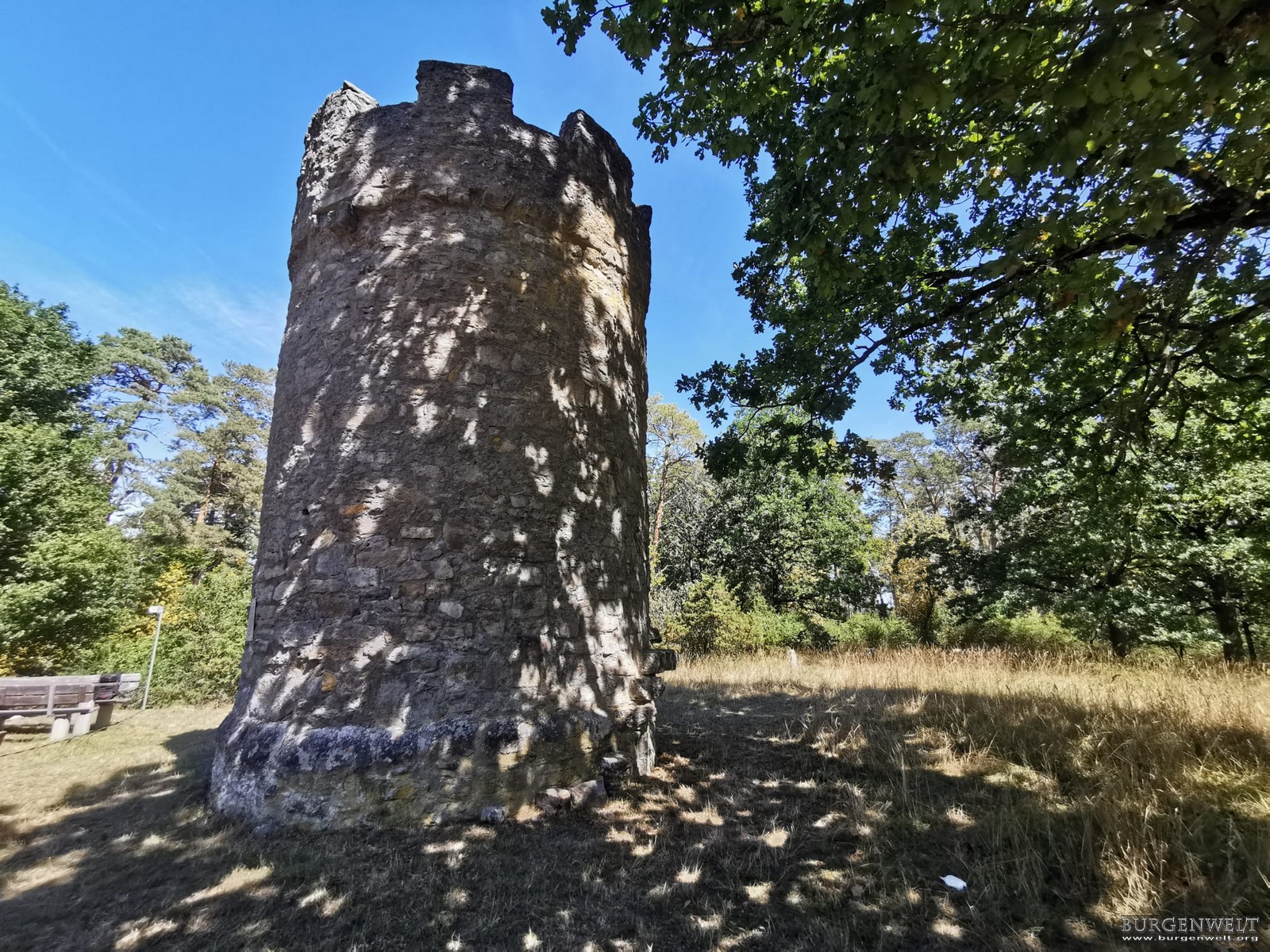 Der Rundturm aus Bruchsteinen ist 8,4 Meter hoch und hat einen Durchmesser von 5,4 Metern.