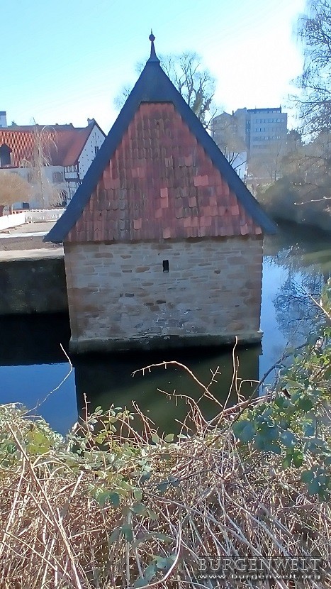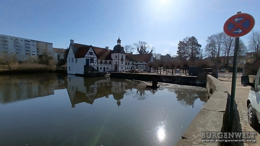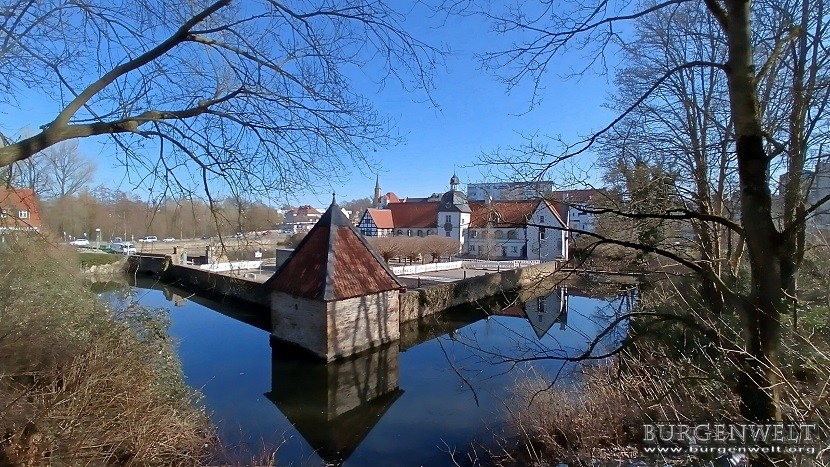 | Ehemals Zwei-Insel-Anlage von der noch Teile der Vorburg erhalten blieben. Die Kernburg lag auf einer kleinen Insel nördlich der Vorburg. 1810 stürzte diese ein und wurde daraufhin komplett, inklusive Insel und Brücke abgerissen. Heute befinden sich in der Vorburg Räumlichkeiten der Volkshochschule Dortmund. | |||||||||||||||||||||||||||||||