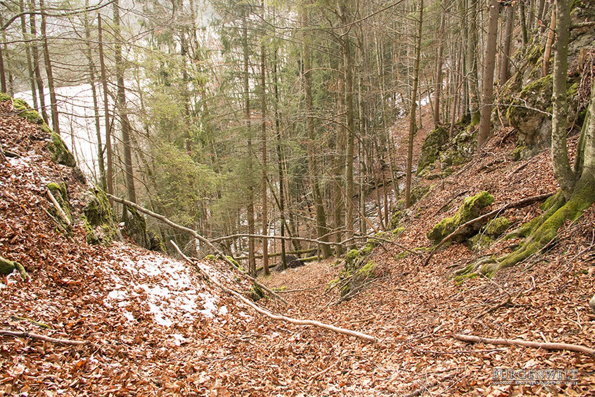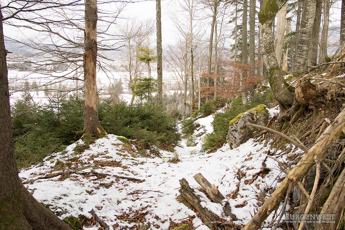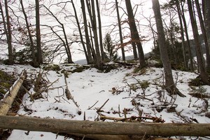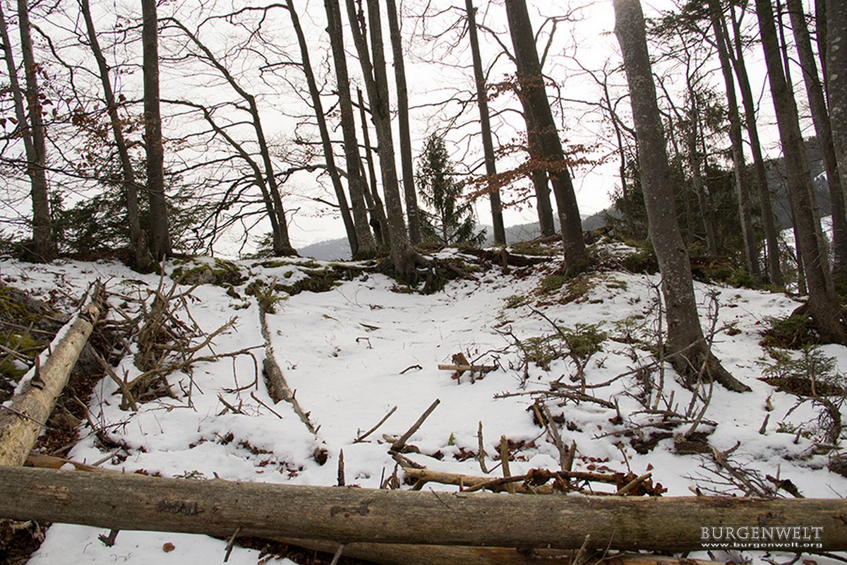 Weder Wege noch Pfade führen zum Burgstall. Zustieg erfolgt durch sehr steiles Gelände mit viel Totholz und starkem Bewuchs.