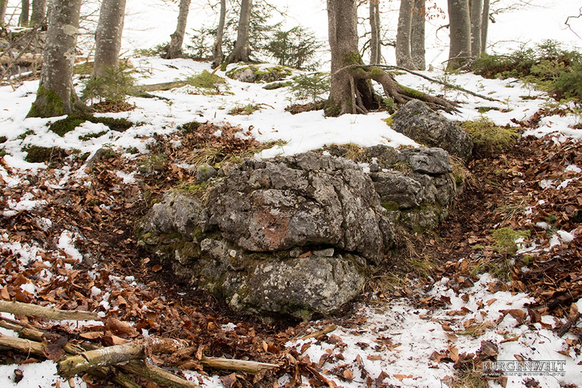 Der Burgstall selbst ist ungesichert und liegt an einer Felswandkante! |
