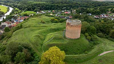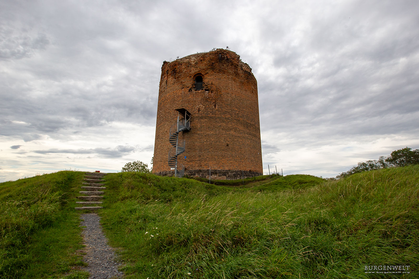 Im letzten Drittel des 12. Jh. (oder Anfang 13. Jahrhundert) entstand eine Turmburganlage aus Backstein („Hügelburg“) mit einem rund 18 m Außendurchmesser messenden Wohnturm; der heutige sogenannte „Grützpott“.