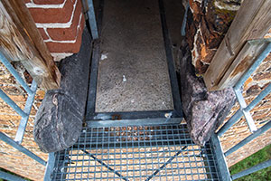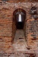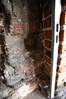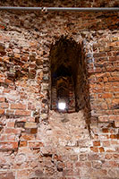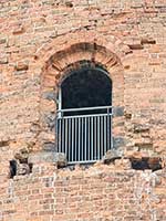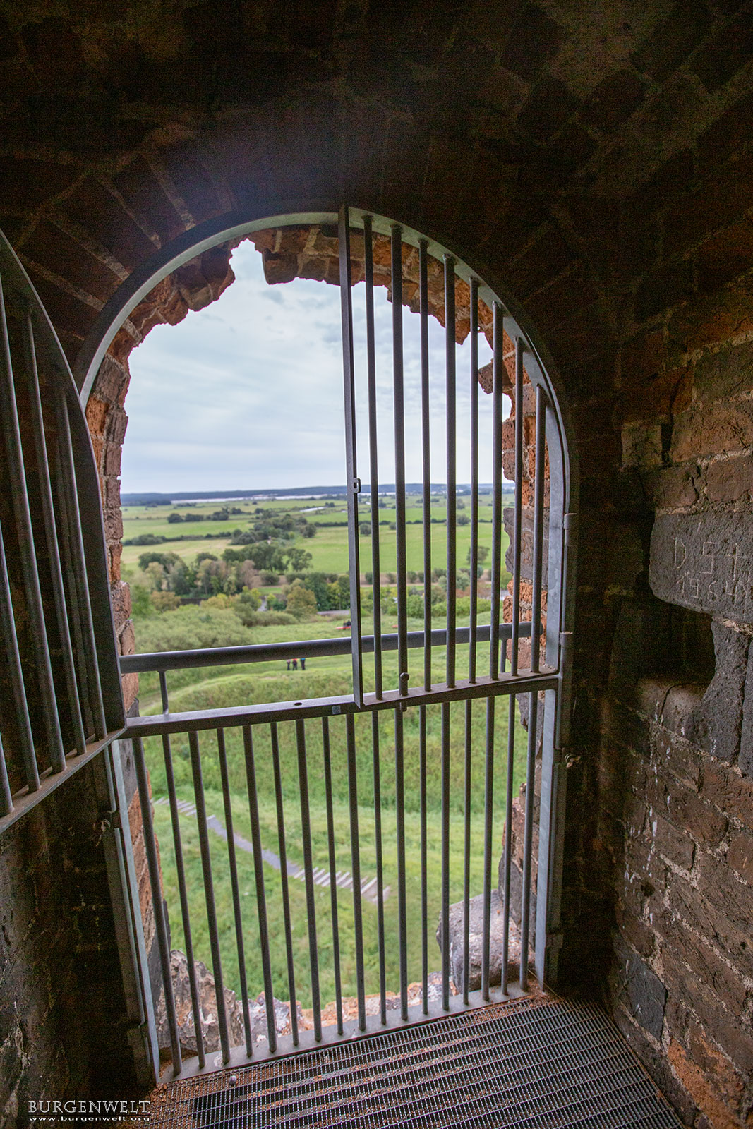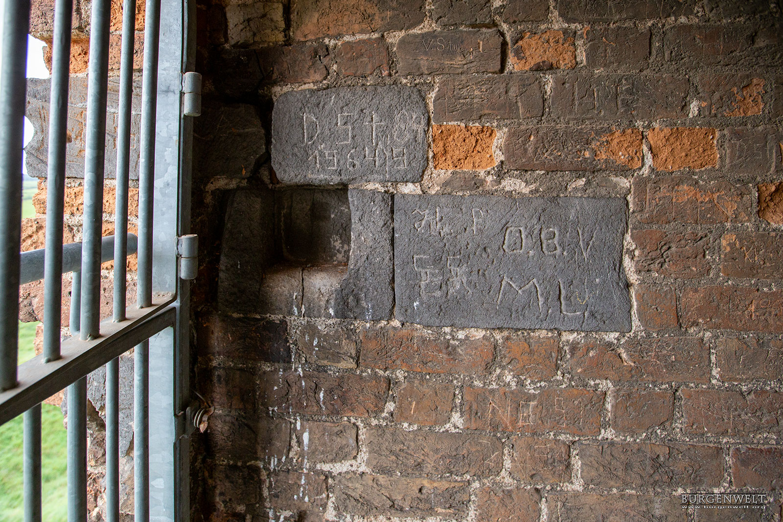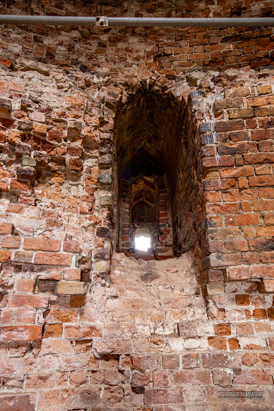 Eine zweite, in rund 6 m Höhe liegende Maueröffnung wurde später ohne Rücksicht auf den ursprünglichen Verband in das Mauerwerk gebrochen. Auch zwei kleine Scharten im Treppenaufgang sind nachträgliche Veränderungen und lassen sich an andersfarbigen Ziegeln erkennen.