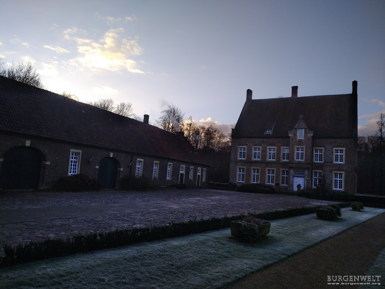 Die Wasserburg Haus Welbergen wird erstmals 1282 erwähnt. Besitzer der Anlage sind die Herren von Welbergen. Um 1330 ging die Anlage an die Herren von Blome über. Im frühen 16 Jahrhundert fällt die Burg an die Herren von Oldenhues. 1624 kommt die Familie von Schede in den Besitz der Anlage. 1712 kommt die Burg in den Besitz der bürgerlichen Familie Bucholtz die Sie bis 1838 behielten. Das Herrenhaus wurde in den Jahren 1730 bis 1745 im Inneren im barocken Stil umgestaltet. Die Außenfassade blieb nahezu unverändert. Ebenfalls werden in diesen Jahren Teile der Vorburg umgebaut. Außerhalb der Gräfte wurde neben der 1625 - 32 errichteten Mühle im Jahr 1840 ein Kornspeicher aus Backstein errichtet. 1929 kauft der niederländischen Bankier Jordaan-van Heek die Anlage. Ziel war es die Wasserburg als Bau- und Kulturdenkmal zu restaurieren und für die Öffentlichkeit zu erhalten. Die im Jahr 1959 gegründete 'Bertha Jordaan-van Heek Stiftung' verwaltet seither die Burg und den Park. Seit 1986 steht die Burg unter Denkmalschutz. |