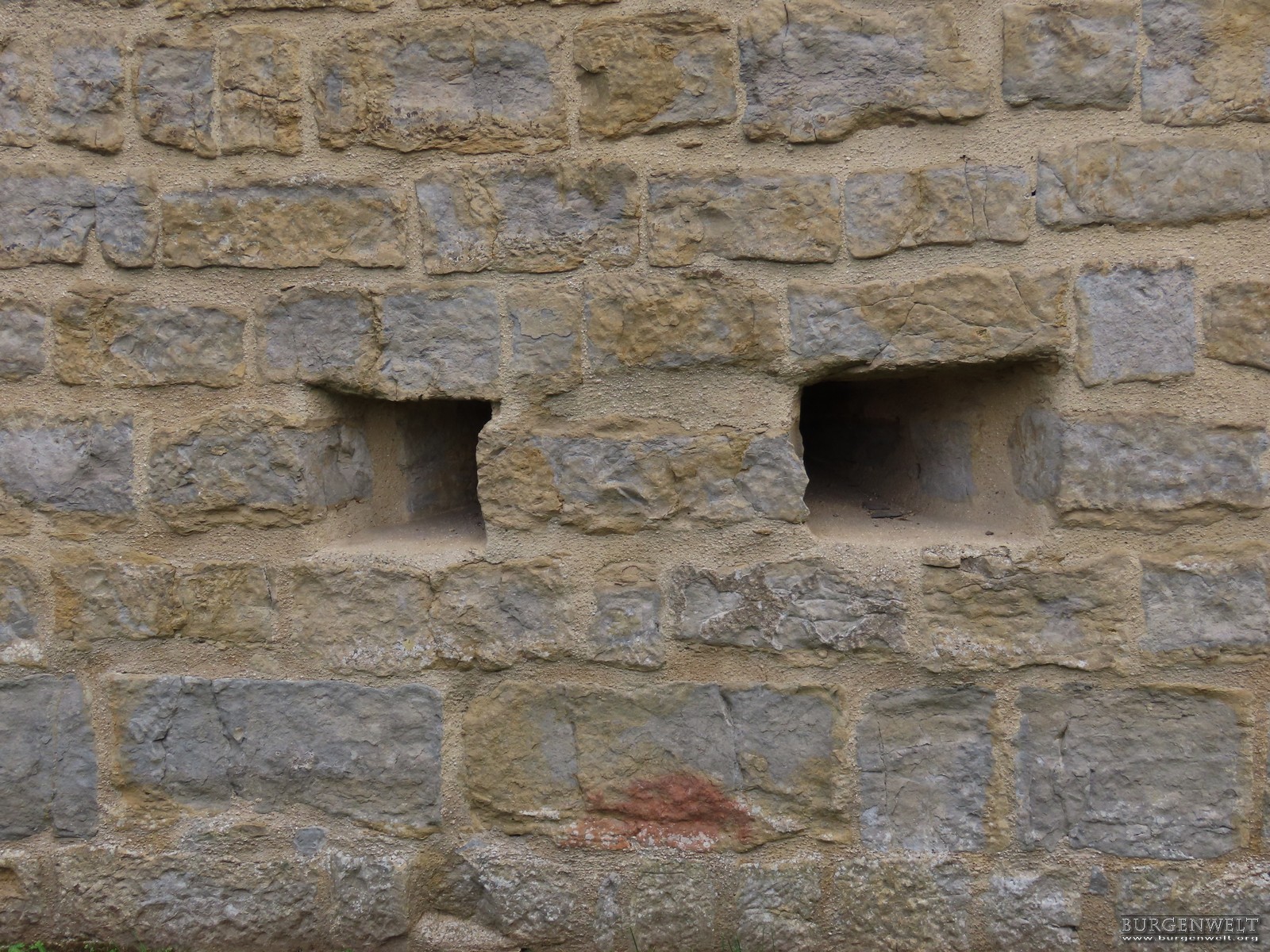 - Die Doppelscharten am nördlichen Kirchenschiff.