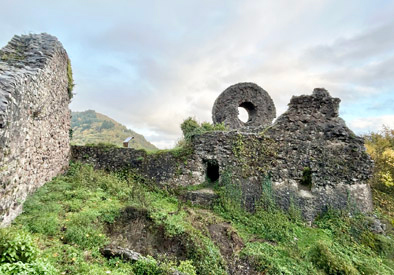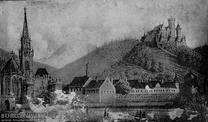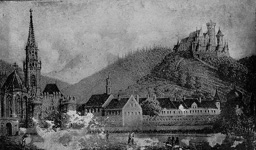 Der Standort der ältesten Burg in Thann, ein Reichslehen in den Händen der Grafen von Eguisheim, konnte bis heute nicht sicher bestimmt werden. Sie wurde gegen 1230 abgelöst durch eine neue Wehranlage in Spornlage über dem Tal der Thur, die Graf Ludwig III. von Pfirt (Ferrette) errichten liess. Wie gross die neue Burg damals schon war, ist unklar. Mit Sicherheit existierten bereits der runde Donjon, die angrenzenden Wohnbauten und der innerste Bering, möglicherweise auch eine Vorburg. Erstmals erwähnt wird die Engelburg, die den Namen nach dem Erzengel Michael führen soll, als «castrum de Tanne» im Jahr 1234. Damals wurde über die Pfirter Grafen Ludwig und Ulrich wegen der Ermordung ihres Vaters die Reichsacht verhängt, König Heinrich (VII.) zog das Lehen Thann ein, verzichtete jedoch zu Gunsten des Bischofs von Strassburg darauf. Ausbau und Übergang an Habsburg Bereits 1251 übergab der Bischof von Strassburg die Engelburg wieder an die Pfirter, die sie zu einer ihrer bevorzugten Residenzen ausbauten. 1271 übergaben sie die Burg wie auch ihren restlichen Besitz dem Bischof von Basel, um alles sogleich als Lehen wieder zu erhalten. Durch die Heirat mit Johanna, Erbin der Grafschaft Pfirt, gelangte 1324 Herzog Albrecht II. von Habsburg in den Besitz der Engelburg. Die Habsburger liessen die Herrschaft durch Vögte verwalten, später diente sie ihnen auch immer wieder als Pfandobjekt. Die Burg wurde im Spätmittelalter mehrfach erweitert und verstärkt. Sie wurde auch häufig angegriffen: 1415 konnte Pfalzgraf Ludwig III. sie vorübergehend besetzen, 1444 hielt sie dem Ansturm des Söldnerheers der Armagnaken stand, und 1468 wurde ein Angriff der Berner abgewehrt. Burgundisches Intermezzo und Wiederaufbau 1449 war die Engelburg an die Reich von Reichenstein verpfändet, was Habsburg-Österreich aber nicht daran hinderte, diesen Besitz nun neu an Herzog Karl den Kühnen von Burgund zu verpfänden. Erst 1470 konnte dieser das Pfand auslösen und die Wehranlage inspizieren lassen. Die damaligen Berichte zeigen, dass die Festung leergeräumt und in einem verwahrlosten Zustand war. Auch die Burgunder reparierten nur das Nötigste. Nach dem Tod Karls des Kühnen kam die Engelburg 1477 zurück an die Habsburger, die aber weiterhin kaum in ihren Unterhalt investierten. Sie diente noch bis 1571 als Pfandobjekt, erst danach wurde der Wiederaufbau ernsthaft angepackt. Diese Bauarbeiten zogen sich bis 1621 hin, dabei wurden auch ein neuer Wohntrakt und eine neue Burgkapelle errichtet sowie die Wasserversorgung verbessert. Zerstörung im Auftrag des Sonnnenkönigs Das konfliktreiche 17. Jhdt. bedeutete das Ende für die Burg. Im Dreissigjährigen Krieg, zwischen 1633 und 1639, zogen sieben Mal Heere durch Thann und besetzten jeweils auch das Château de l'Engelbourg – abwechselnd französische und schwedische Truppen. Daraufhin geriet die Burg auch während der Fronde in den Fokus militärischer Aktionen, weil sie Gegnern des französischen Königs als Unterschlupf diente, bis Ludwig XIV. sie 1654 besetzen liess. Er übergab die Engelburg zusammen mit zahlreichen ehemals habsburgischen Gütern im Elsass 1658 an Kardinal Jules Mazarin. 1673 aber beschloss der «Sonnenkönig», entgegen dem Willen der Erben Mazarins, die Engelburg definitiv zur zerstören. Diese Arbeit wurde noch im gleichen Jahr ausgeführt. Doch mit den dicken Mauern des Donjons taten sich die königlichen Mineure schwer: Die ersten beiden Sprengungen brachten den Turm nur ins Wanken, erst nach einer dritten Sprengung fiel er auf die Seite. Der unterste Mauerring blieb auch in umgekippter Stellung intakt, so dass man aufrecht hindurchgehen kann. Dieses auffällige Wahrzeichen der Burgruine wird im Volksmund «L'oeil de la sorcière» (Hexenauge) genannt. |