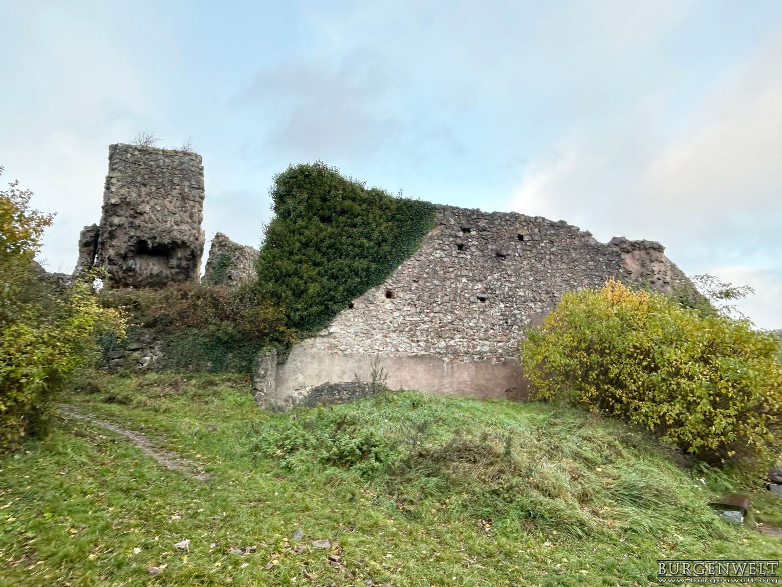 | Um 1230 durch die Grafen von Pfirt (Ferrette) gegründete Burg über der Stadt Thann, die 1324 erbweise an die Habsburger gelangte. 1673 wurde sie im Auftrag des französischen Königs Ludwig XIV. gesprengt, wobei vom umgekippten Donjon ein runder Mauerring intakt blieb. Dieses Wahrzeichen ist heute als «L'oeil de la sorcière» (Hexenauge) bekannt. | |||||||||||||||||||||||||||||||
