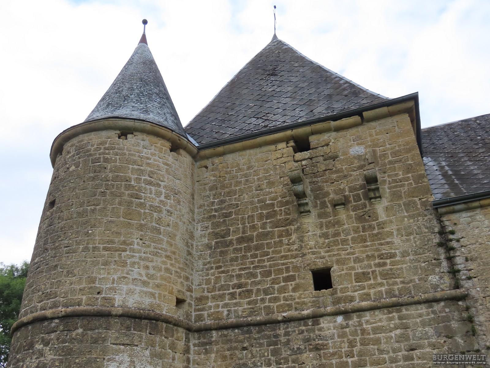 - Die Westfassade mit den Rundtürmen.