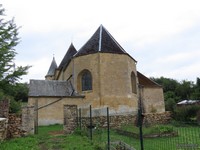 Die Kirche liegt in der am südlichen Rand der Ortes Servion, Zugang über einen schmalen Pfad zwischen zwei Häusern. |