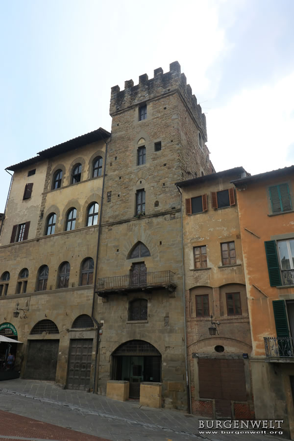 Geschlechterturm aus dem 13. Jahrhundert. Der Torre Faggiolana ist einer von zwei alten Wohntürmen (Torre dei Lappoli) auf der Piazza Grande.