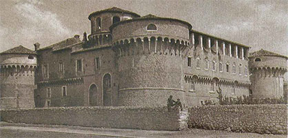 Die Burg weist einen viereckigen Grundriss mit vier zylindrischen Eckbastionen auf. Erhalten geblieben sind der aus dem 11. Jahrhundert stammende Bergfried, heute rechts im überbauten Burghof gelegen, sowie Teile der alten Ringmauer aus mittelgroßen Blöcken und die Überreste eines Brunnens mit Säulen. Die Ursprünge der Burg Orsini-Colonna reichen bis ins 12. Jahrhundert zurück und sind eng mit der Entwicklung der Stadt Avezzano in der Provinz L’Aquila in Mittelitalien sowie der umliegenden Region verbunden. Die erste Bauphase der Burg war ein einzelner Wach-/Signalturm mit quadratischem Grundriss, entworfen von Gentile De Palearia. Die Burg Orsini-Colonna von Avezzano stellt eines der bedeutendsten historischen Bauwerke im Gebiet der Abruzzen dar. Sie wurde Ende des 15. Jahrhunderts (1490 baute Gentile Virginio Orsini das Kastell) auf den Resten einer älteren Anlage gegründet und bis ins 16. Jahrhundert hinein mehrfach umgebaut (Marcantonio II Colonna ließ die Burg, 1565, zu einen Palast umbauen.). Die Burg erlitt schwere Schäden durch das Erdbeben am 13. Januar 1915, das die gesamte Stadt Avezzano und die umliegenden Ortschaften zerstörte und mehr als 30.000 Todesopfer (in Avezzano 9000) forderte. Eingang (links) ist mit einem Spitzbogen verziert und wurde mit der Orsini-Festung (1490) errichtet. Der Eingang (rechts), 1565 von der Familie Colonna erbaut, ist mit rautenförmigen geschliffenen Quadersteinen verziert und wird von einem trapezförmigen Architrav bekrönt, der mit einem Flachrelief zweier aufgerichteter Bären (das Symbol der Familie Orsini) zeigt, die Rosen in Richtung des mittig platzierten Wappens der Familie Colonna. Die Burg schloss mit einem auf Kragsteinen ruhenden, vorspringenden Bauwerk ab, dessen Teile sowohl an den Fassaden als auch an den Türmen erhalten sind. |