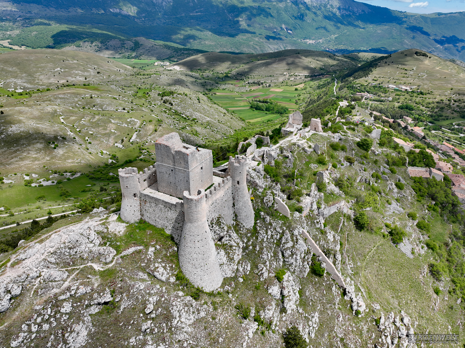 Die Rocca Calascio liegt auf rund 1500 m Höhe in einer landschaftlich außergewöhnlichen und beeindruckenden Umgebung. Wegen ihrer extrem strategischen Lage gilt sie als eine der beeindruckendsten Burgen Italiens.
