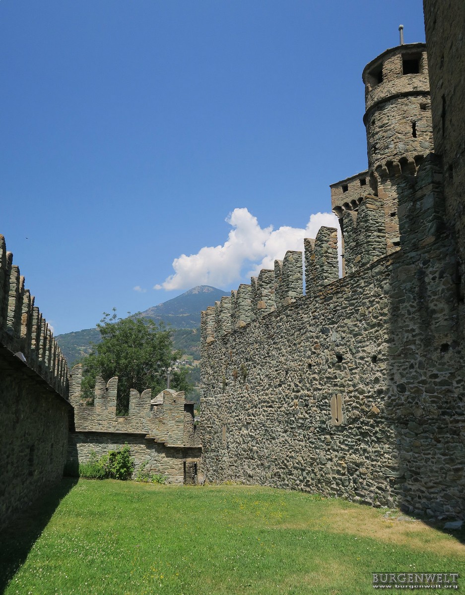 Ab dieser Zeit, des größten finanziellen und politischen Reichtums der Burgherren von Challant, wurde die Anlage gemäß des damaligen höfischen Lebensstiles ständig ausgebaut und verschönert. Aber ab der zweiten Hälfte der 15. Jhs. verarmte die Familie von Challant und ließ die Anlage verfallen.