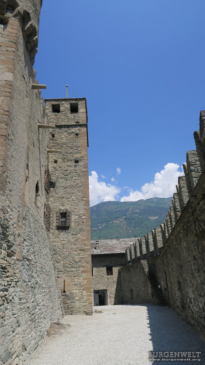 Ähnlich wie beim Castello di Verrès, kaufte der Architekt Alfredo d`Andrade, ein führender Vertreter der piemonteser Kulturbewegung, die Anlage und schenkte sie 1906 dem Staat, nachdem er die am meisten verfallen Gebäudeteile restaurieren lassen hatte.