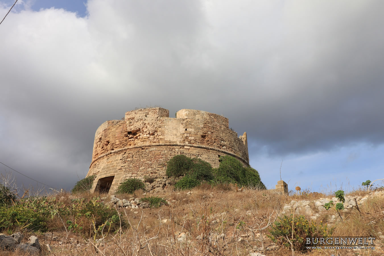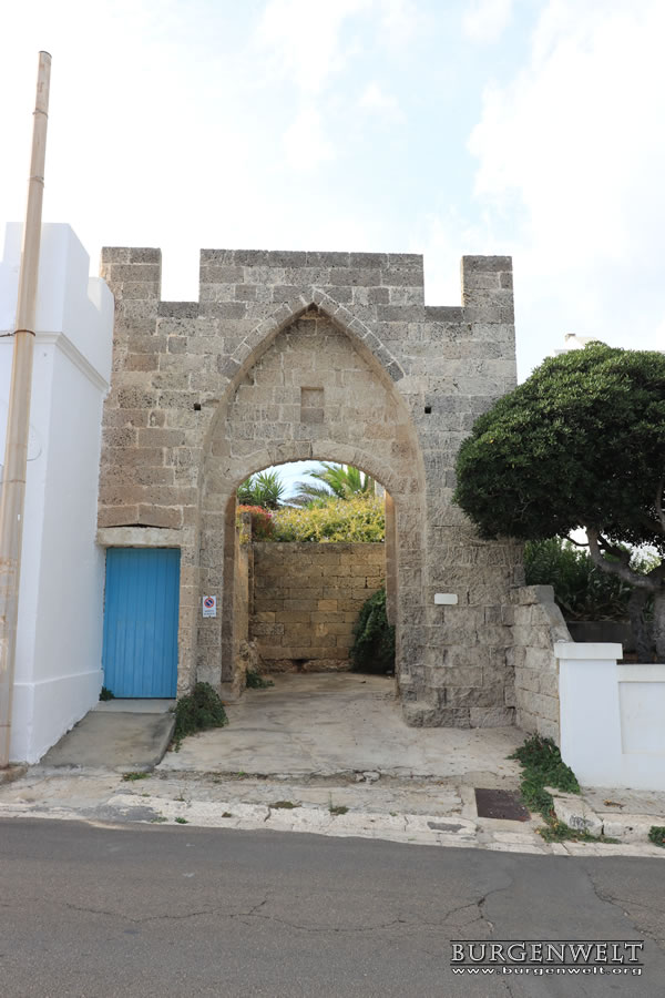 Der Torre dell'Uomo Morto ist ein eingeschossiger Wehrturm. Im Erdgeschoss waren vier Kanonen und auf der Wehrplattform eine Kanone aufgestellt.
