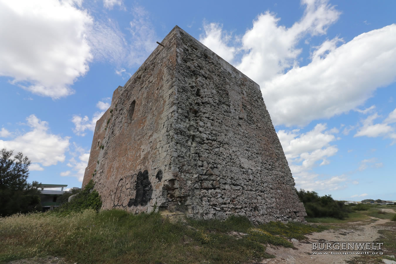 Der Torre Specchia Ruggeri besitzt einen quadratischen Grundriss und wurde im 16. Jahrhundert errichtet.
