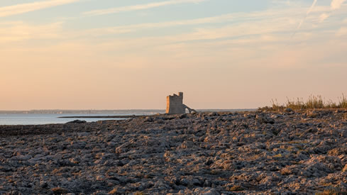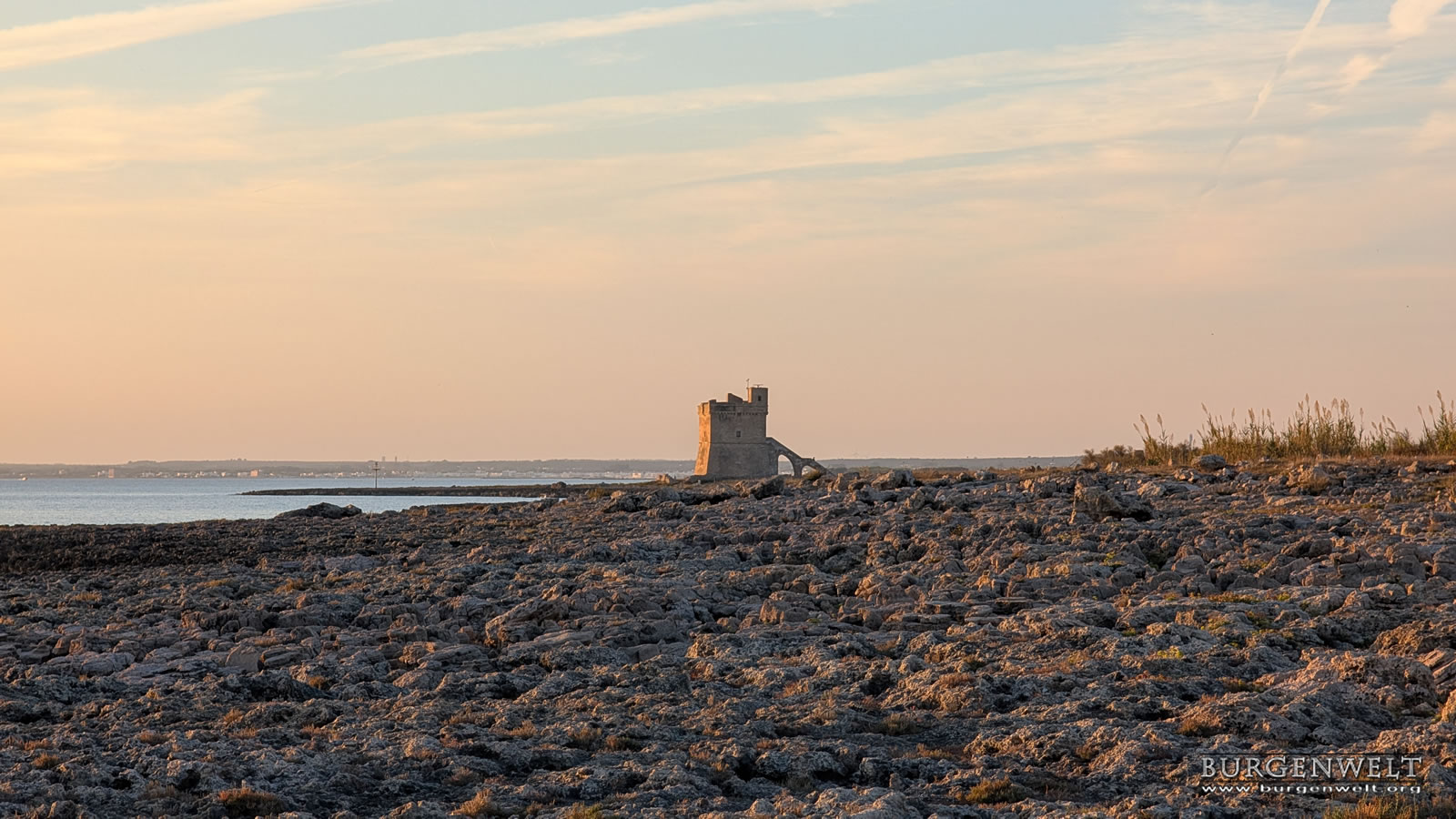 Der Turm liegt auf der Landzunge südlich des Hafens.