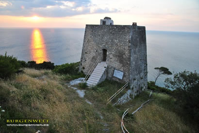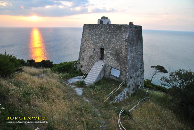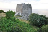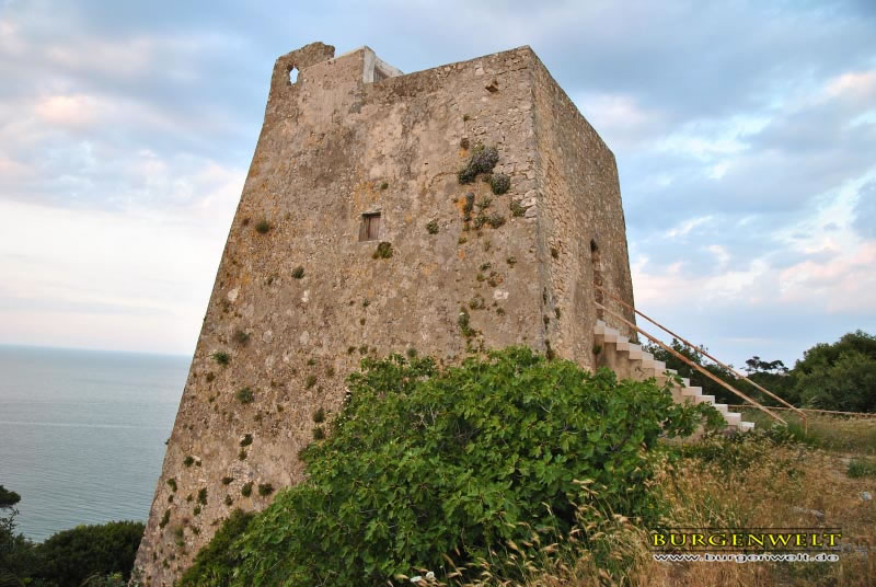 Einer der zahlreichen Türme zum Schutz der apulischen Küste. Die ersten dieser Wachttürme wurden bereits im Mittelalter errichtet. Im 16. Jh. erfolgte dann der Aufbau eines regelrechten Verteidigungssystem unter den Spaniern. 1748 zählte Apulien 131 dieser Türme.