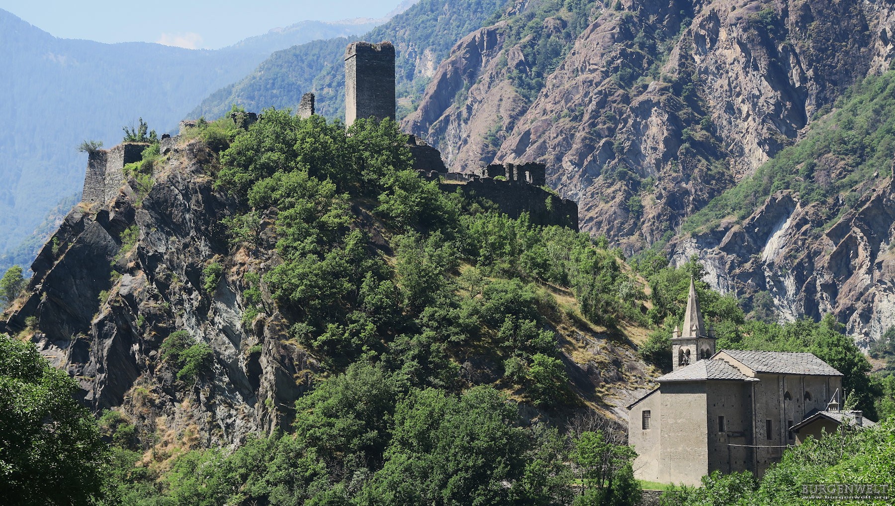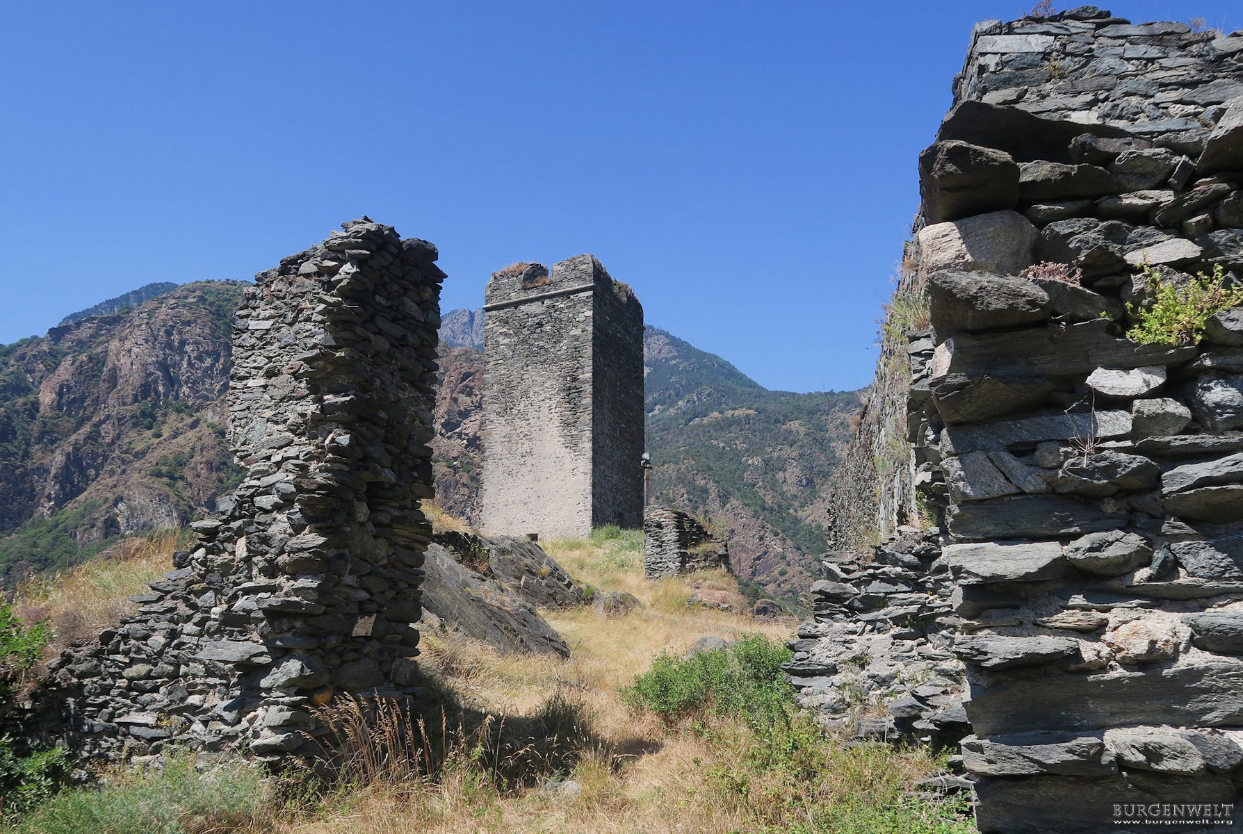 Das Castello di Saint-Germain ist eine Höhenburg mit einem zentralen Bergfried und wurde vermutlich im 11. oder 12. Jahrhundert im mittleren Aostatal errichtet.