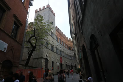 Der älteste Kern des Palazzo Chigi-Saracini ist der aus dem 12. Jh. stammende Palazzo Marescotti. Der Palazzo Marescotti war damals eine Castellare (Stadtfestung).