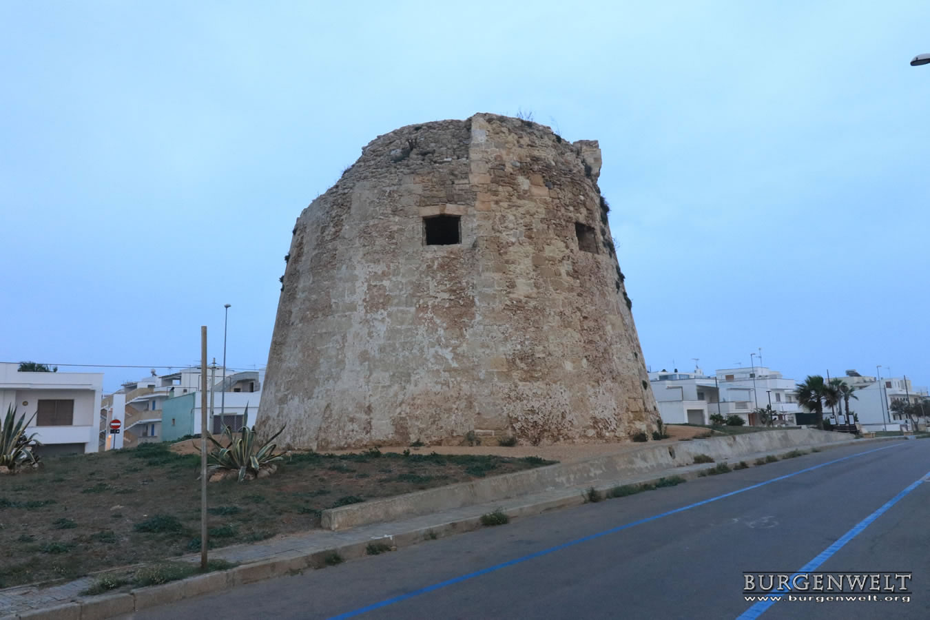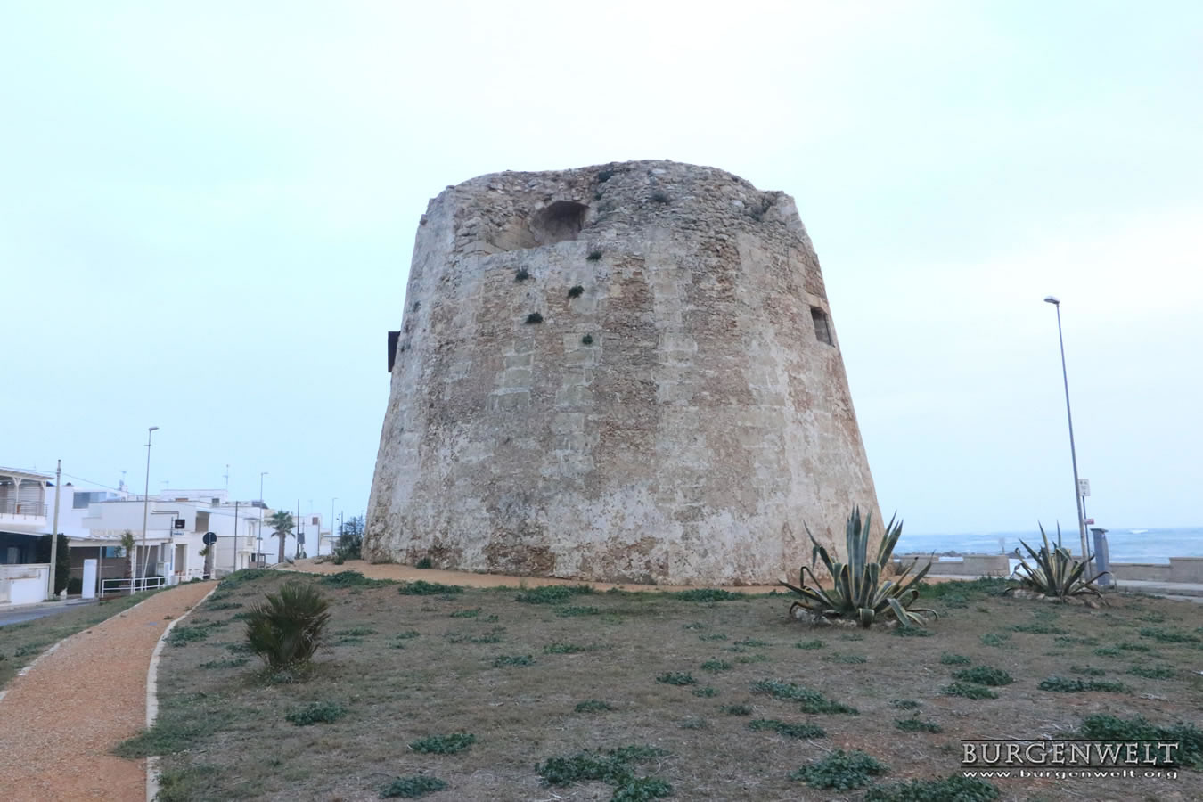 Der Torre Mozza mit seinem kegelstumpfförmigen Sockel, hat einen Durchmesser von etwa 10 m und eine Höhe von 12 m. Der Turm wurde im 16. Jahrhundert durch König Karl V. erbaut.