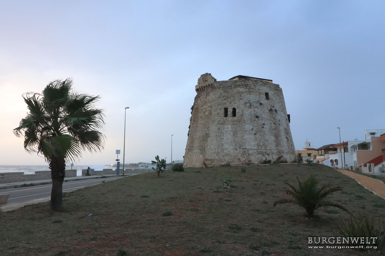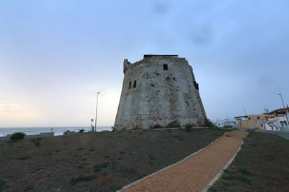 Der Ort Torre Mozza ist über die SP91 zu erreichen. Der Turm liegt direkt am Strand.