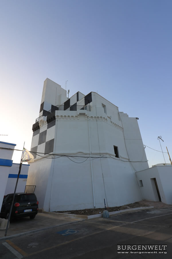 Der Ort Torre San Giovanni ist über die SP91 & SP290 zu erreichen. Der Turm liegt direkt am Hafen.