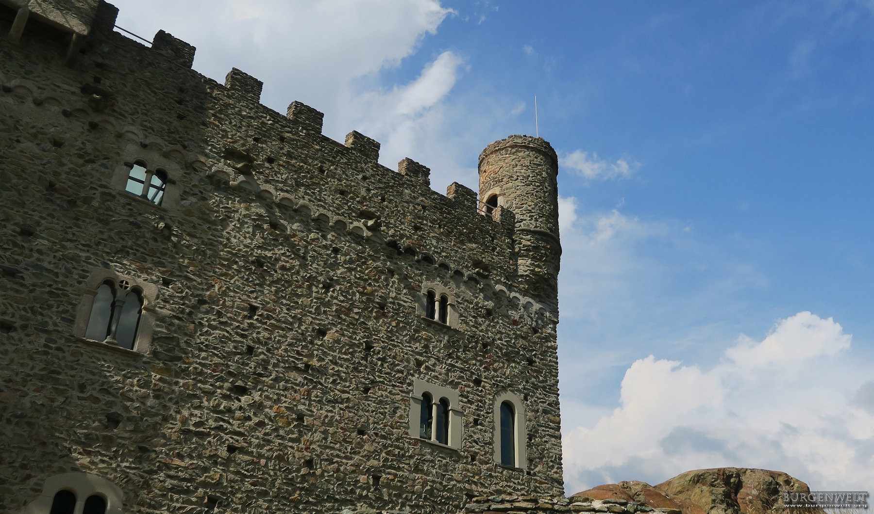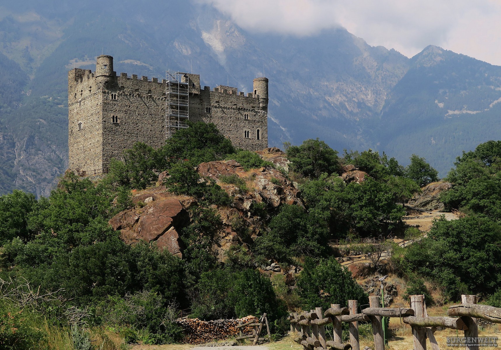 Der Castello di Ussel steht auf einem felsigen Vorsprung oberhalb von Châtillon und dominiert das Tal der Dora Baltea.