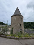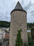 Ein Wehrturm überragt das Tal des Flusses Alzette