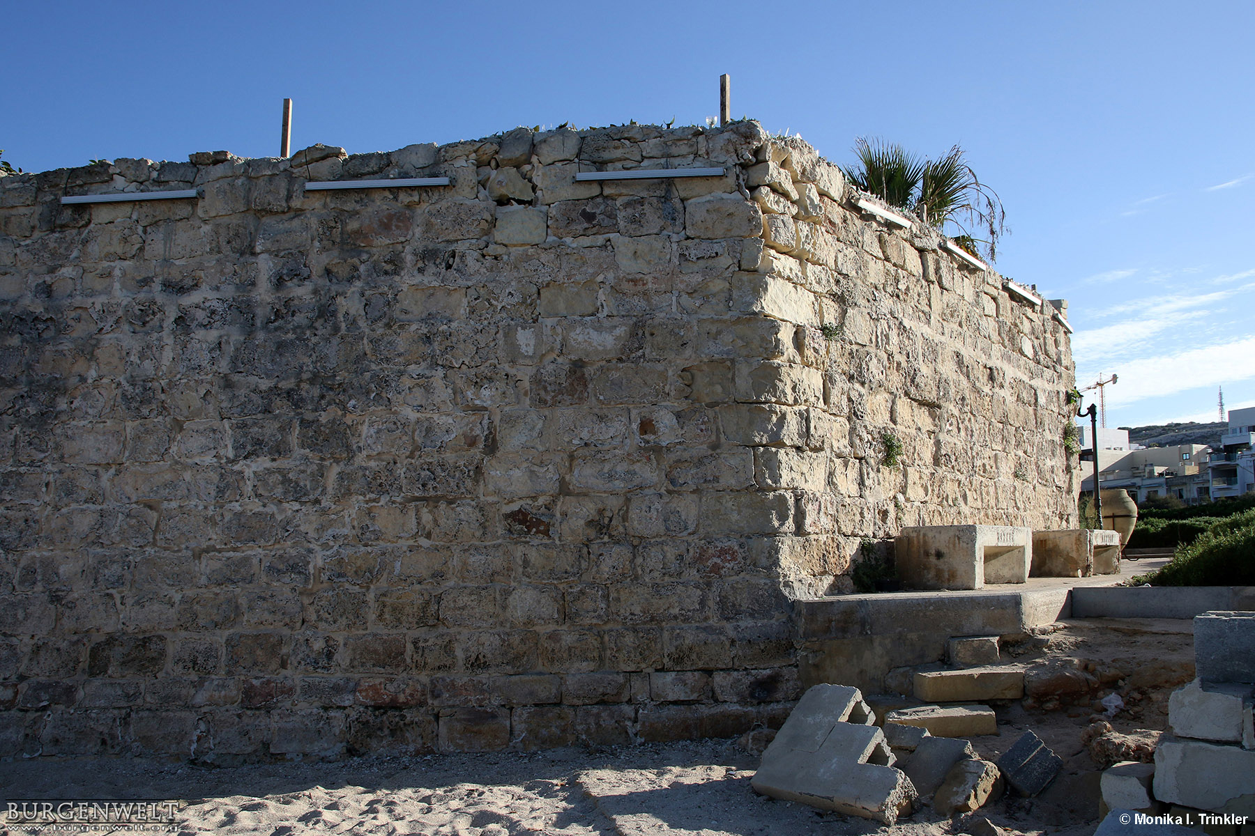 | Gut erhaltenes, fünfeckiges Redoubt in der Bucht von Baħar iċ-Ċagħaq, das noch im Zweiten Weltkrieg genutzt wurde. Heute beherbergt es eine Bar mit Restaurant. | |||||||||||||||||||||||||||||||