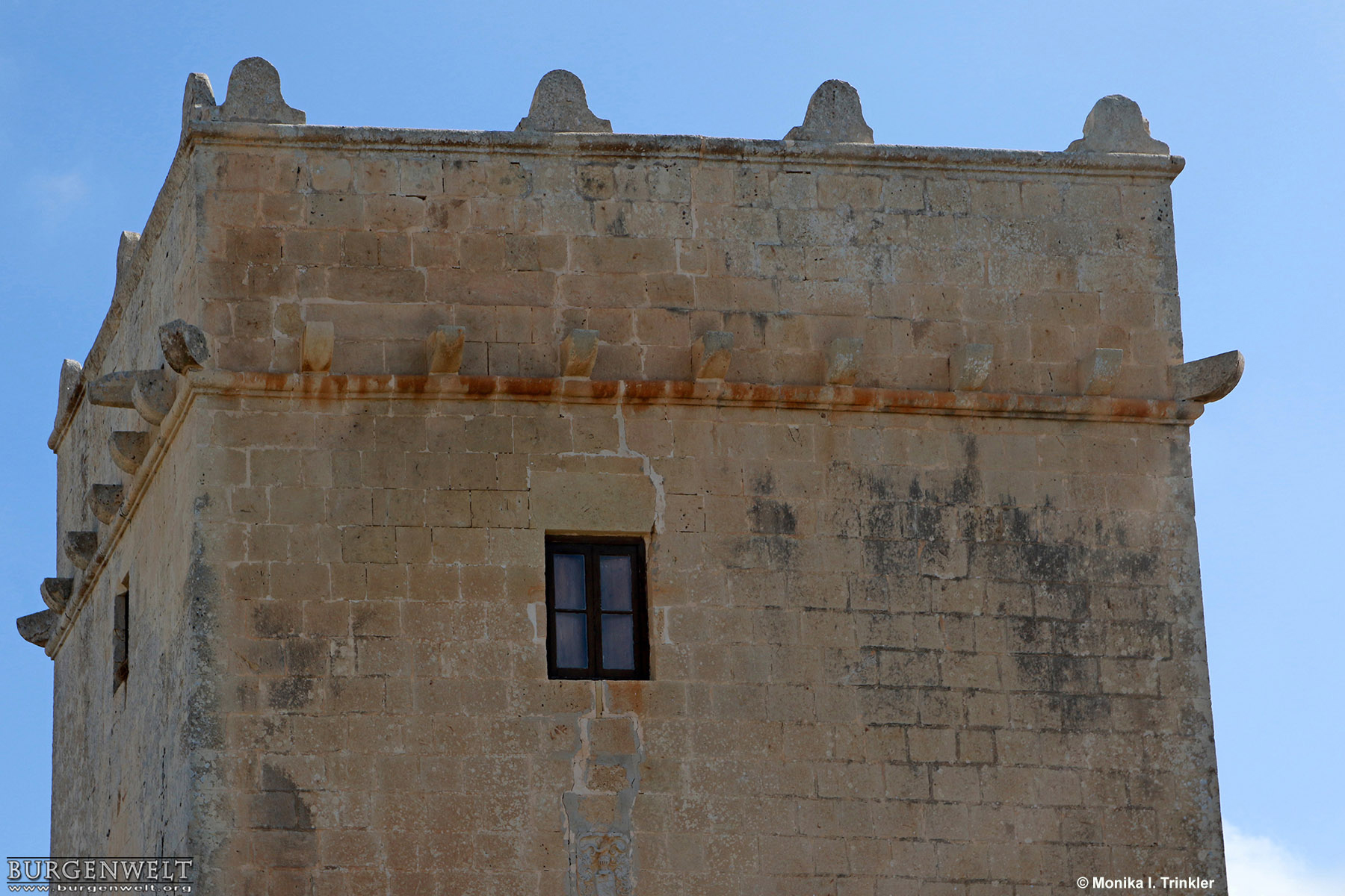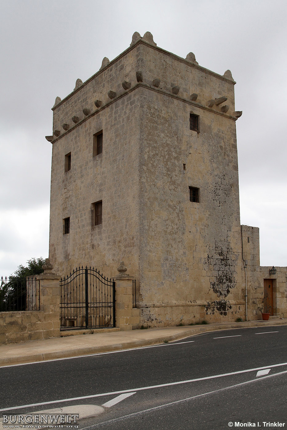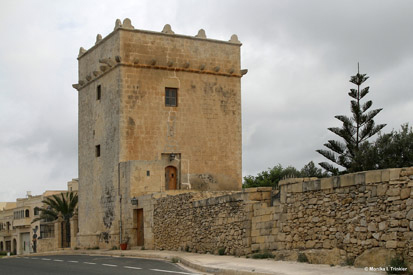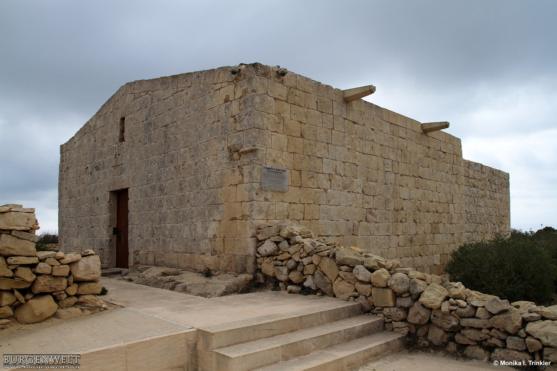 Der Santa Cecilia Tower ist ein Wehrturm in Għajnsielem. Er wurde 1613 von Ritter Bernardo Macedonia, Kommandeur der Artillerie des Johanniterordens, errichtet, um der Bevölkerung des Ortes Schutz vor den Überfällen von Korsaren zu bieten. Seinen Namen erhielt er von der nahe gelegenen Santa Cecilia Chapel, der ältesten noch erhaltenen, mittelalterlichen Kapelle auf Gozo. Die Kapelle wurde entweiht und zu einem Nebengebäude des Turms. Sichtverbindung zu weiteren Wehrbauten Der vergleichsweise kleine Turm hat einen rechteckigen Grundriss und gerade Wände mit wenigen kleinen Fenstern. Die weitgehend einfach gehaltene Struktur zeigt - neben steinernen Sturmpfosten - Dachschmuck und einfache Wasserspeier als dekorative Elemente. Der Santa Cecilia Tower konnte mit den Batterien in der Ramla Bay sowie mit dem Mġarr ix-Xini Tower kommunizieren und so Nachrichten über ganz Gozo übermitteln. Nach dem Bau der Wignacourt-, Lascaris-, sowie der De Redin-Towers wurde es möglich, von diesem Turm aus innerhalb weniger Minuten Nachrichten vom Süden in den Norden der Insel Gozo zu übermitteln. Umgekehrt konnte eine Nachricht zum St Mary’s Tower auf Comino und von dort aus zur Insel Malta weitergeleitet werden. Der Santa Cecilia Tower heute Das seit seiner Errichtung in Privatbesitz befindliche Gebäude steht seit 1996 als Grade-1-Bauwerk unter Denkmalschutz und ist im National Inventory of the Cultural Property of the Maltese Islands verzeichnet. 1997 versuchte die Regierung Maltas, das Gebäude und die dazugehörige Kapelle zu enteignen, doch der entsprechende Bescheid wurde wegen Streitigkeiten um die Entschädigung nie vollzogen. Dadurch befindet sich der gut erhaltene Turm weiterhin in Privatbesitz und ist für die Öffentlichkeit nicht zugänglich. Die ehemalige Kapelle wurde bis zu einem von Vandalen gelegten Feuer im Jahr 2007 weiterhin als Tierstall und Lager genutzt. Danach wurde sie an Wirt Ghawdex übergeben, restauriert und 2012 wieder eingeweiht. Sie ist dadurch kein Nebengebäude des Turms mehr und kann besichtigt werden. |