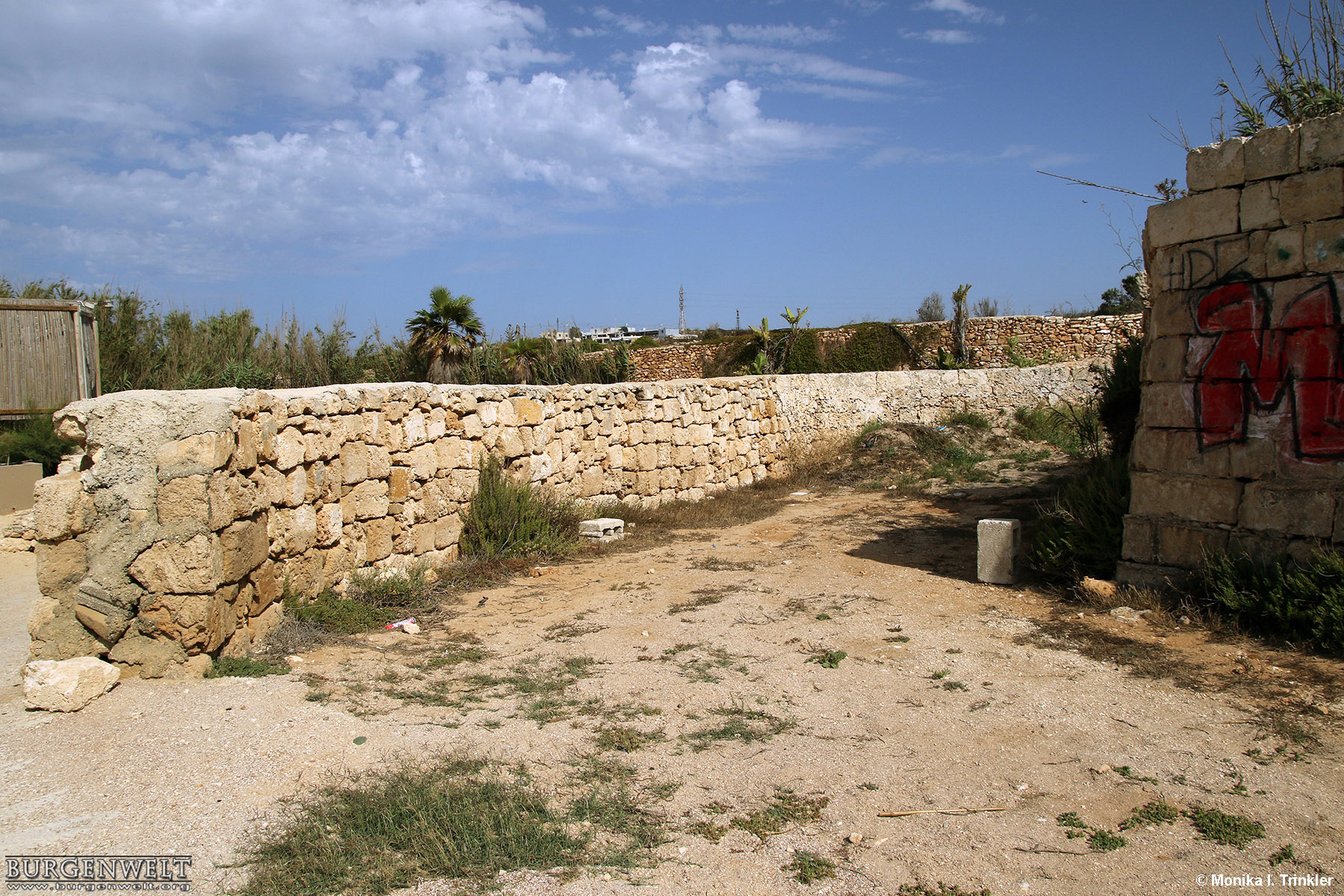 | Ruinen eines fünfeckigen Redoubts mit Graben und Counterscarp, das 1715/16 von den Johannitern zum Schutz der Ramla tal-Bir errichtet wurde. | |||||||||||||||||||||||||||||||