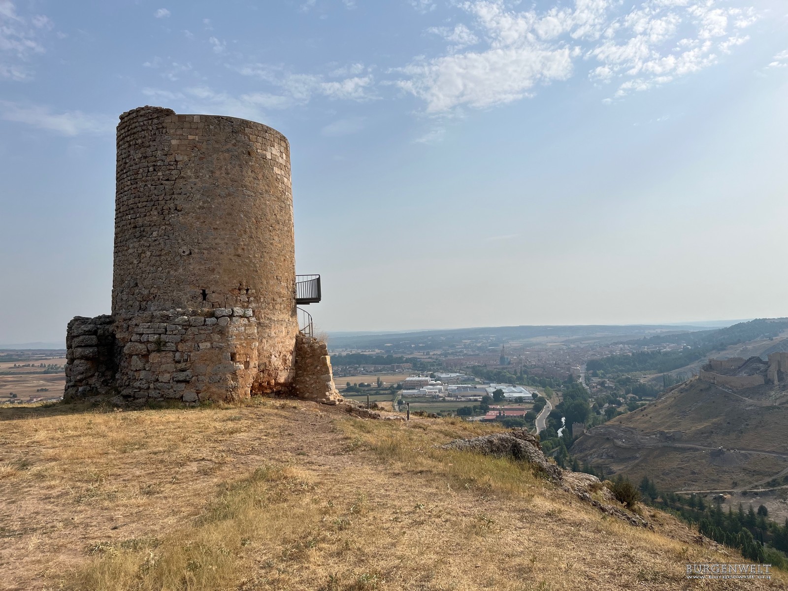 - Vom Wachturm aus genießt man einen weiten Blick über das Ucero-Tal und Burgo de Osma, hinüber zum Castillo de Osma auf der gegenüberliegenden Talseite und nach Süden zum Duero-Tal. Der Besuch lässt sich gut mit der Besichtigung der römischen Ausgrabungsstätte verbinden.