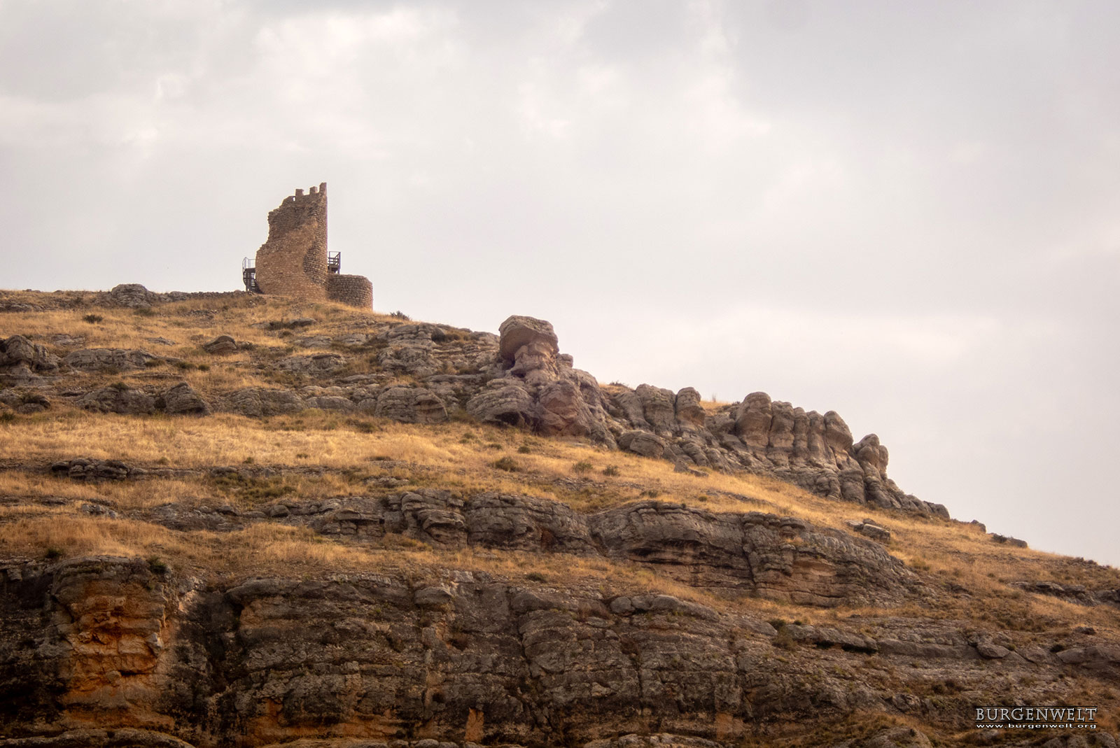 Der Turm südlich von Berlanga de Duero ist über die Landstraße SO-152. Wenn die Straße das Enge Flusstal des Rio Escalote verlässt, geht vor La Riba de Escalote schräg links eine Feldweg ab, der für Wagen mit Bodenfreiheit befahrbar ist. |