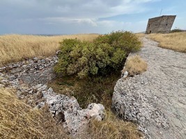 Auf einem ca. 130 x 30 Meter langen 12 Meter hohen Felsgrat mit bearbeiteten senkrechten Wänden. |