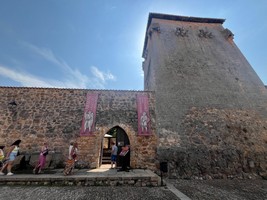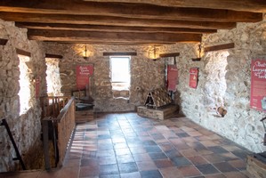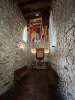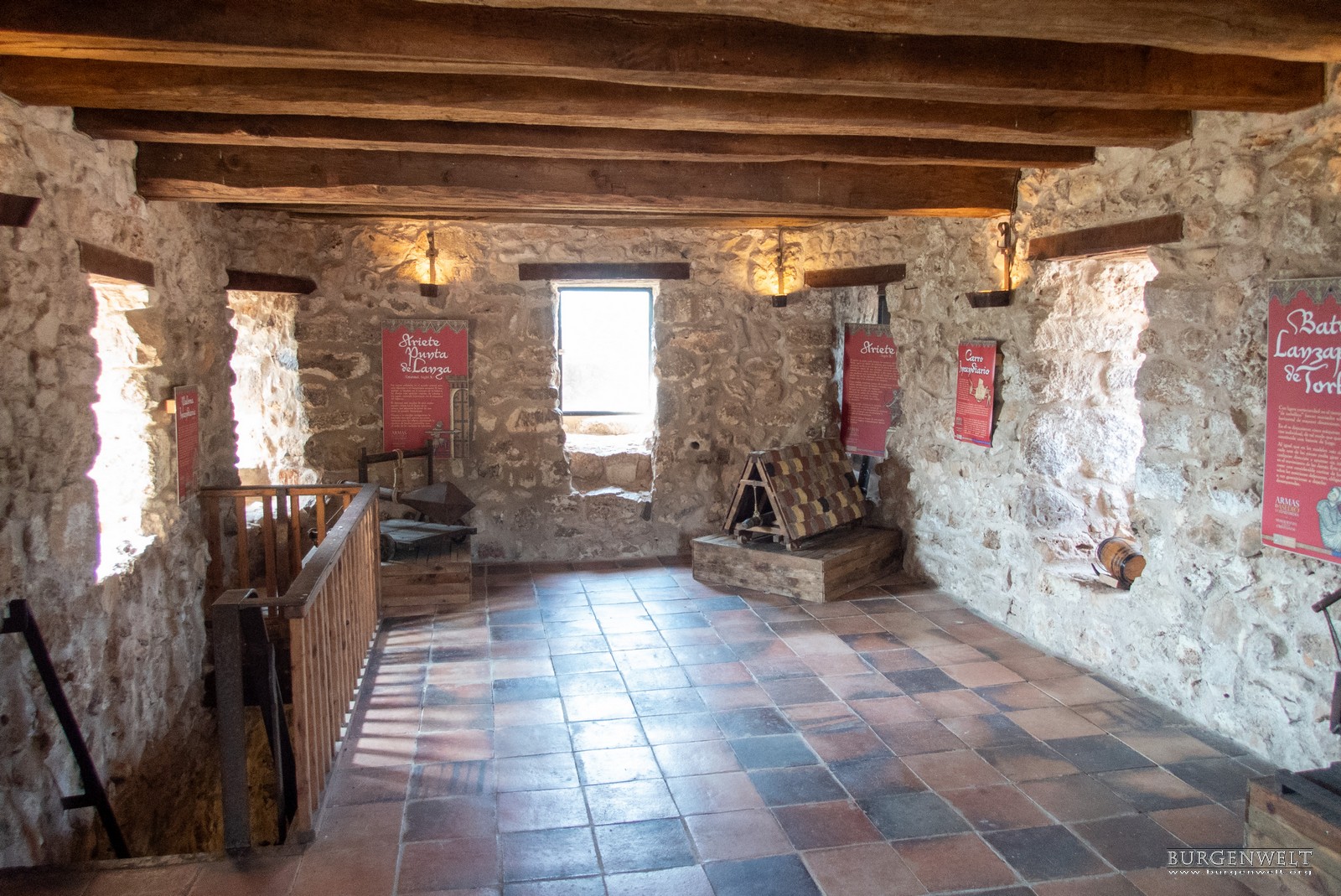 Im Burghof und im Turm selbst ist eine recht anschauliche Sammlung von Nachbauten mittelalterlicher Belagerungs- und Verteidigungsmaschinen zu besichtigen. |