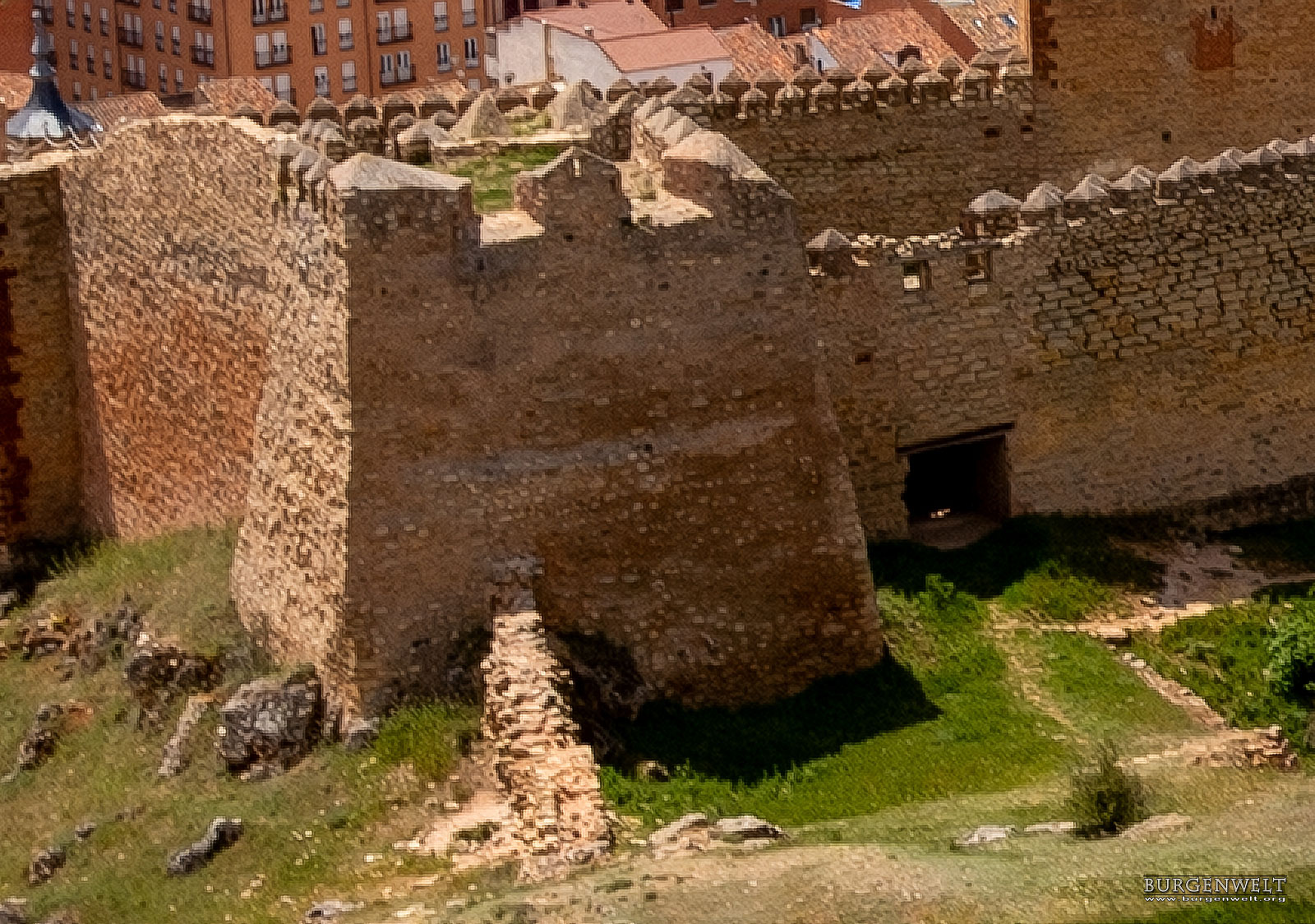 Zwischen dem Torre de Aragon und dem Alcázar gab es nach den heute noch vorhandenen Spuren eine doppelte Verbindungsmauer.