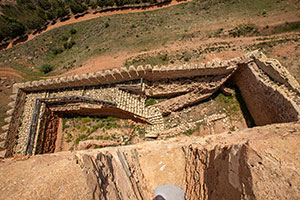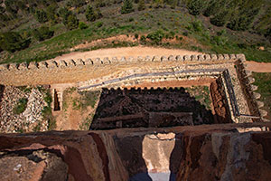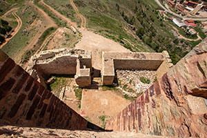 Die Geschichte Molinas reicht weit zurück, auch wenn von den frühesten Siedlungsphasen nichts erhalten geblieben ist. Archäologische Funde in den Gebieten Tartanedo und La Yunta datieren die Besiedlung der Keltiberer in der Region wie die Lusonen, Titos und Arévaker ins 7. Jahrhundert v. Chr. Die römische Herrschaft in der Region begann etwa im 2. Jahrhundert v. Chr. Nach der römischen Herrschaft kam es auf der Halbinsel im 5. bis 7. Jahrhundert zur Einwanderung germanischer Stämme. Eine Übergangszeit zwischen dem römischen Hispanien und der späteren muslimischen Herrschaft. Die Westgoten gelangten nach überqueren des Ebro und über Aragón bis in das Gebiet von Molina und dränkten die romanisierten keltiberischen Bevölkerung zurück und gründeten bedeutende Städte wie Recópolis (578) im Süden der Provinz. Mitte des 7. Jahrhunderts erreichten die ersten Muslimen; die Berber; die Halbinsel; damit begann die arabische Herrschaft. Das Señorío de Molina war ein nahezu unbesiedeltes Gebiet, mit wenigen Befestigungen, aber fruchtbareren Land an den Flüssen. Als das Kalifat von Córdoba im Jahr 1031 zerfiel, entstanden die Taifa-Reiche, voneinander unabhängige Gebiete sehr unterschiedlicher Größe, wie auch die Taifa von Molina. Die Schwäche dieser Taifa-Reiche führte zu einer instabilen Machtlage, die die Reconquista durch christliche Könige ausnutzten. Im Jahr 1129 wurde Molina den Arabern unter dem aragonesischen König Alfonso I, genannt „der Kämpfer“ (el Batallador), zurückerobert. Nachdem er die Umgebung von Molina sowie Gebiete um Calatayud, Daroca und Teruel zurückgewonnen hatte und weitestgehend entvölkert waren, überließ Alfonso I diese Gebiet der Krone Kastiliens. Seine Ehefrau Doña Urraca wiederbesiedelte das Gebiet Molina, dass Grenzland zwischen Kastilien und Aragón war. Sie übergab das Gebiet als Herrschaft Urracas Sohn Alfonso VII „der Kaiser“, dass von seinem Höfling Don Manrique (oder Amarilco) eine eigenständige Herrschaft ausbauen sollte. Don Manrique begann die Wiederbesiedlung, indem er ein Fuero (Rechts- und Privilegienstatut) erließ, das 1154 verkündet wurde und fast zwei Jahrhunderte lang als territoriales und gesellschaftliches Ordnungsmodell für die Menschen in Molina und im Señorío diente. Da es sich um ein Señorío de behetría handelte, lag die Herrschaft zwar bei einem Mitglied der Grafenfamilie Lara, jedoch nicht erblich. Die Untertanen bestimmten den Nachfolger im Señorío durch Abstimmung. Es gab bis zu sechs Herrschaftsfolgen; die letzte war María de Molina, die Sancho IV, König von Kastilien, heiratete. Damit ging der Titel „Señor de Molina“ im Jahr 1293 endgültig an den kastilischen König über. Im Jahr 1134 wurde das Señorío de Molina errichtet, das unabhängig von der Krone Kastiliens wurde. Zwischen 1138 und 1144 erfolgten Wiederaufbau und Wiederbesiedlung von Molina und seines Herrschaftsgebiets (Soria, Navarra, Aragón etc). Die von den Arabern eerrichtete Mauerring wurde bis zum Fluss Gallo erweitert. Die Burg wurde wiederaufgebaut und vergrößert; zugleich entstanden Adelsbauten und religiöse Gebäude wie San Martín. Die Blütezeit erlebte Molina im 16. und 17. Jahrhundert. Zahlreiche Hidalgo-Familien aus Aragón und Nordspanien kamen, und es entstanden Paläste, Herrenhäuser und neue religiöse Bauten. Im Spanischen Erbfolgekrieg zu Beginn des 18. Jahrhunderts und den Unabhängigkeitskrieg (1810), wurde die Stadt verwüstet. Hinzu kamen innere Konflikte um die Kontrolle des Landes, etwa die Kriege zwischen Karlisten und Liberalen in der zweiten Hälfte des 19. Jahrhunderts. Desweiterem der Spanische Bürgerkrieg im 20. Jahrhundert, in dem Molina de Aragón jedoch keine großen Schäden erlitt, da es strategisch zwar günstig lag, aber außerhalb der eigentlichen Kampfhandlungen blieb. Das Vorwerk in ihrer heutigen Gestalt entstand in der Zeit zwischen dem 12. und 14. Jahrhundert. Mit der Weiterentwicklung des Schießpulvers und der Artillerie verlor es zunehmend an militärischer Bedeutung. Der Wehrturm wurde im 19. Jahrhundert unterem anderem während des spanischen Unabhängigkeitskrieg (1808-1814) und den Karlistenkriegen erneut genutzt. Das Vorwerk war mit Alcázar durch einen gedeckten Weg verbunden. Der Anlagenkomplex besteht (von der Bergspitze an gerechnet) aus dem Torre de Aragon, (einem vorgeschobenen Verteidigungswerk; Fünfeckturm mit Zwingermauer), einem Alcázar (Burg des Stadtherrn), einer Alcabar, der vornehmen Oberstadt und der mauerumwehrten Unterstadt. Zwischen dem Torre de Aragon und dem Alcázar gab es nach den heute noch vorhandenen Spuren eine doppelte Verbindungsmauer. Die Dachterasse (Azotea) war teilweise überdacht. Der offene Bereich lag zum Eingangsbereich des Turms und des tiefergelegenden Alcázar. Der Turm war mit Zinnen versehen. Die einzelnen Stockwerke war der Aufenthatlsraum des Kommandanten, Aufenthaltsraum (Schlafraum) der Garnison, Wachstube, Vorratsraum und auch provisorisches Gefängnis. |