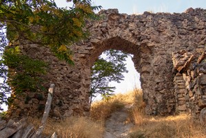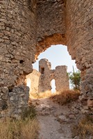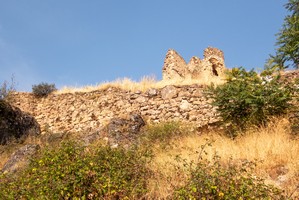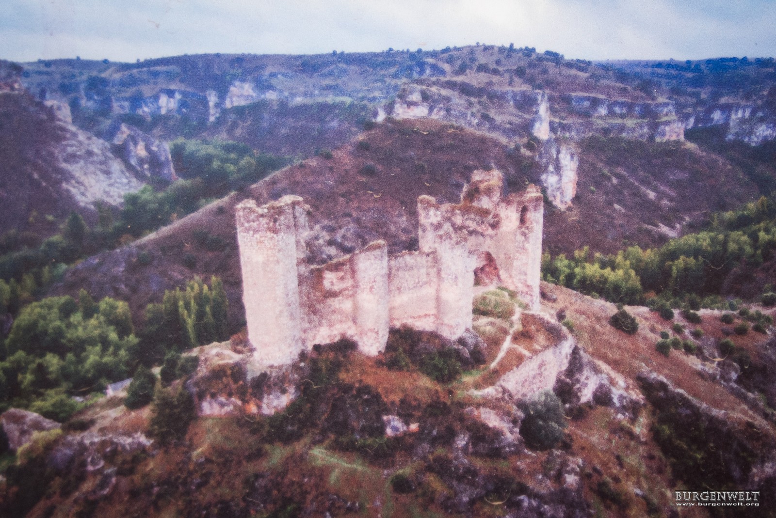 Ruine einer kleinen Burg in dramatischer Landschaft und mit wechselvoller Geschichte. |