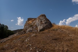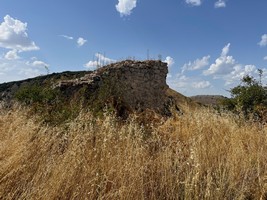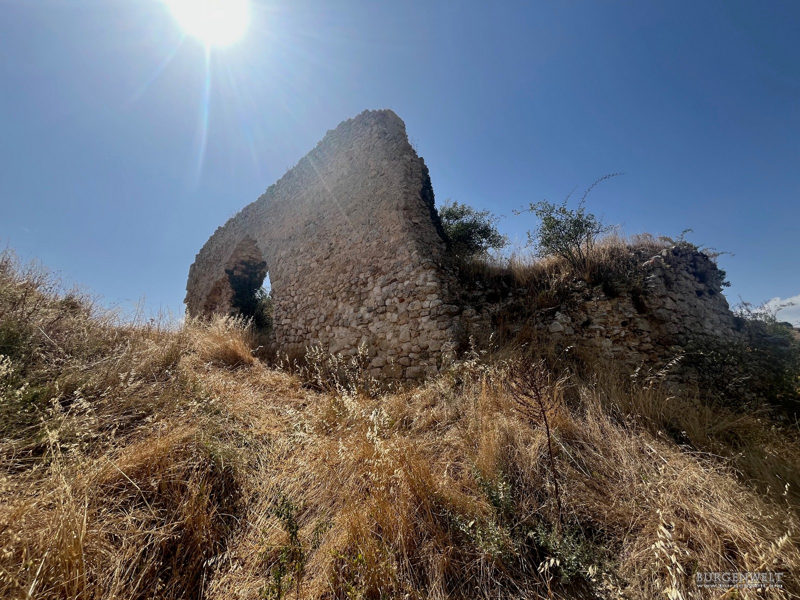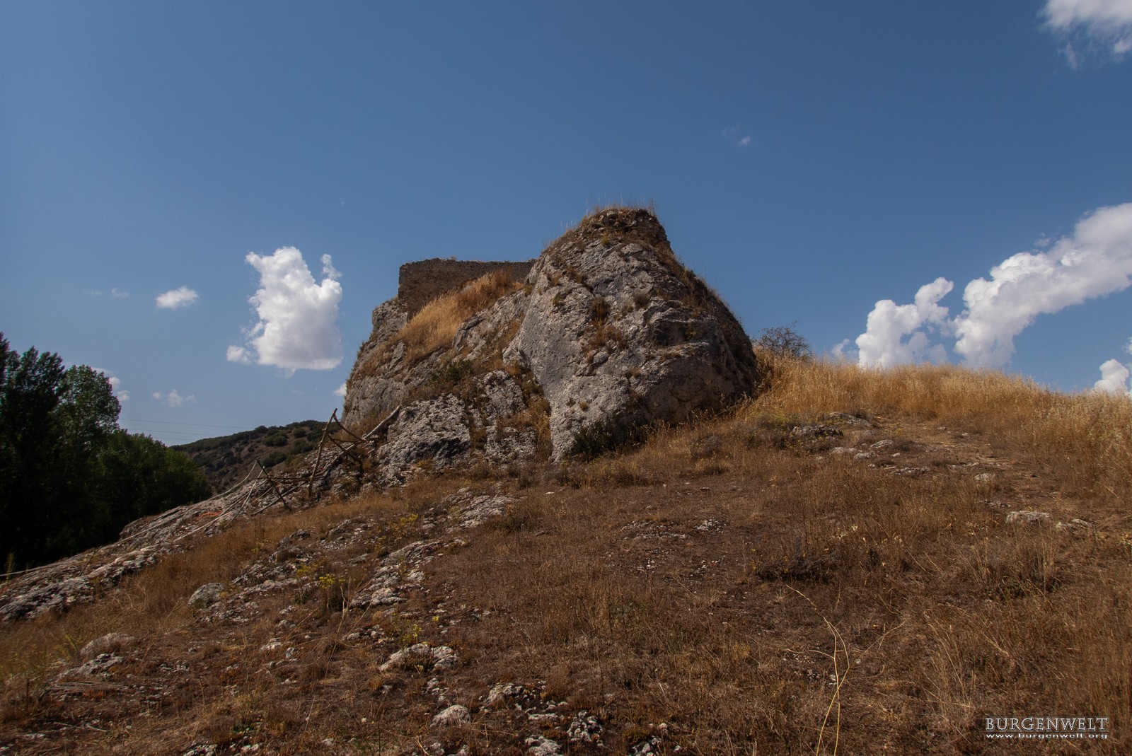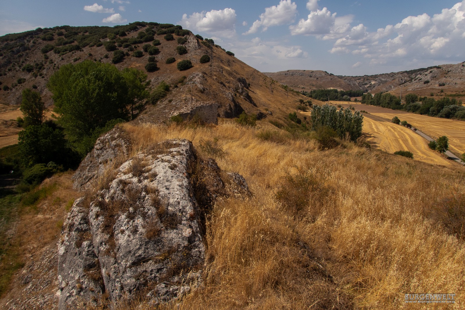 Auf einem felsigen Hügel westlich des Ortes Ubierna. Auf dem Hügel ist ein annähernd rechteckiger Baukörper erkennbar, der entlang eines nach Nordwesten ausgerichteten Felsgrates verläuft. |