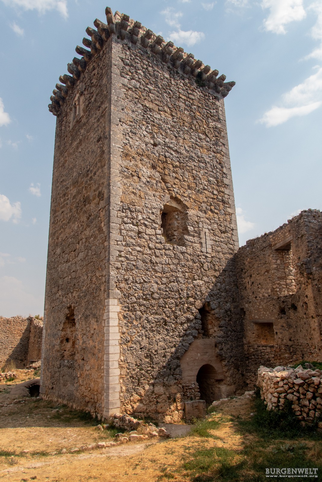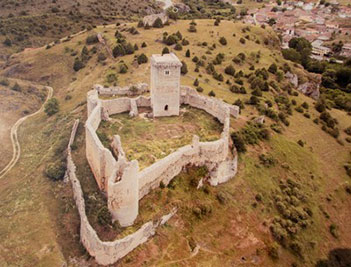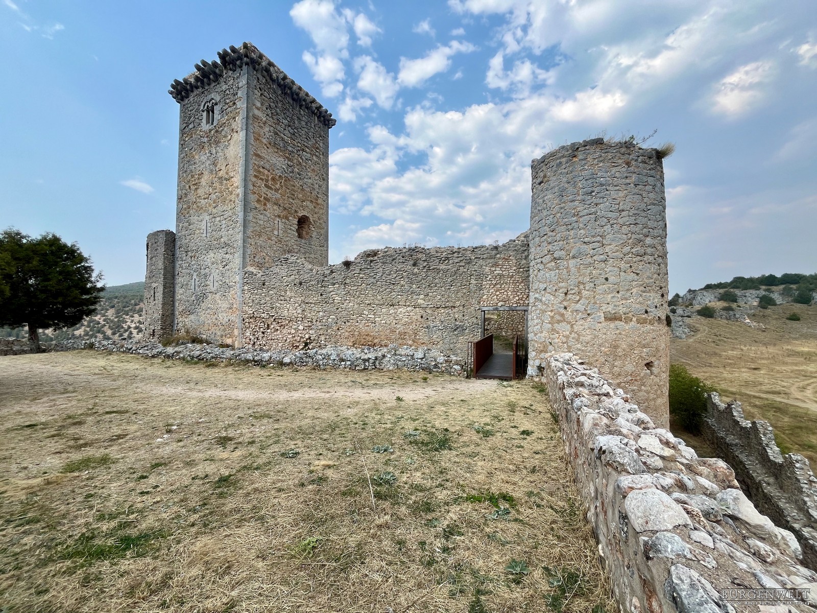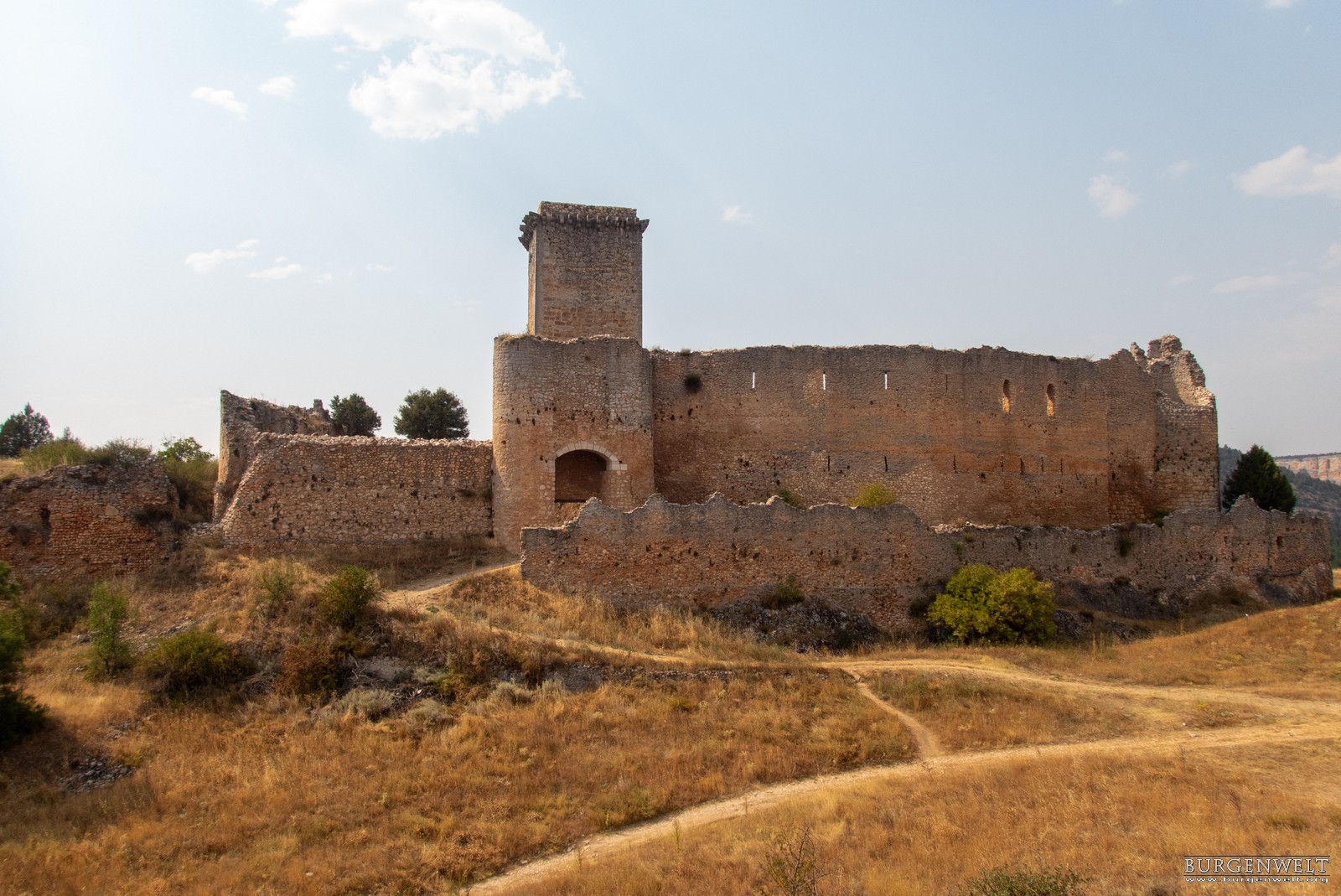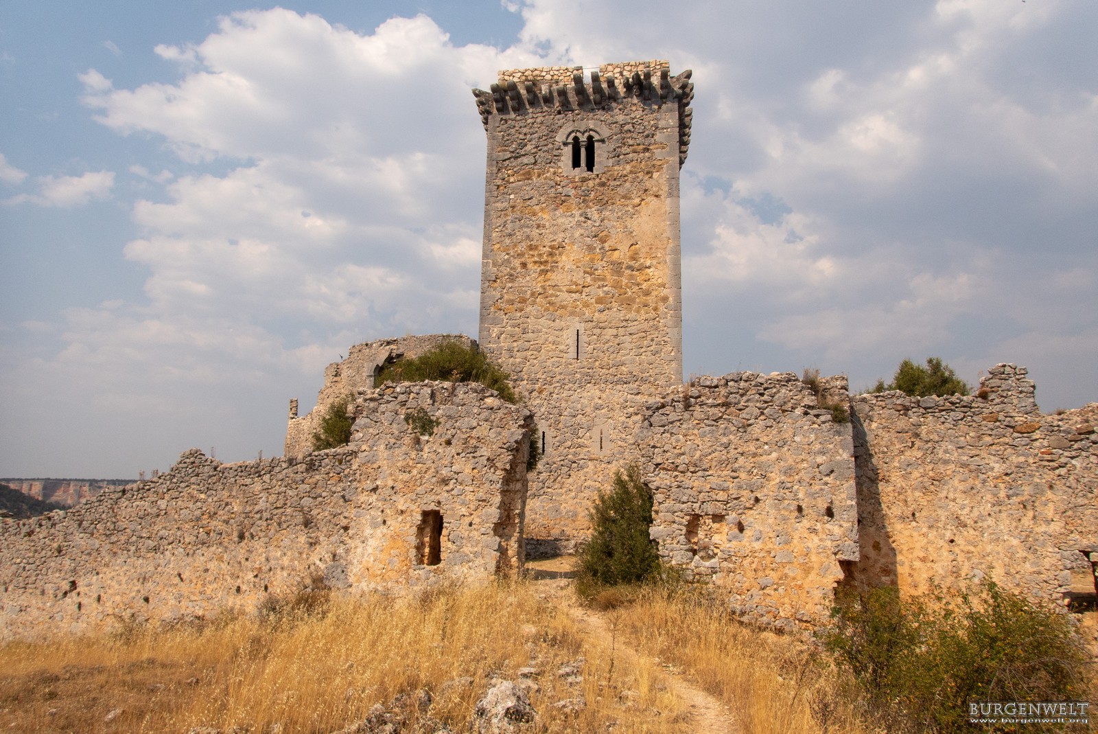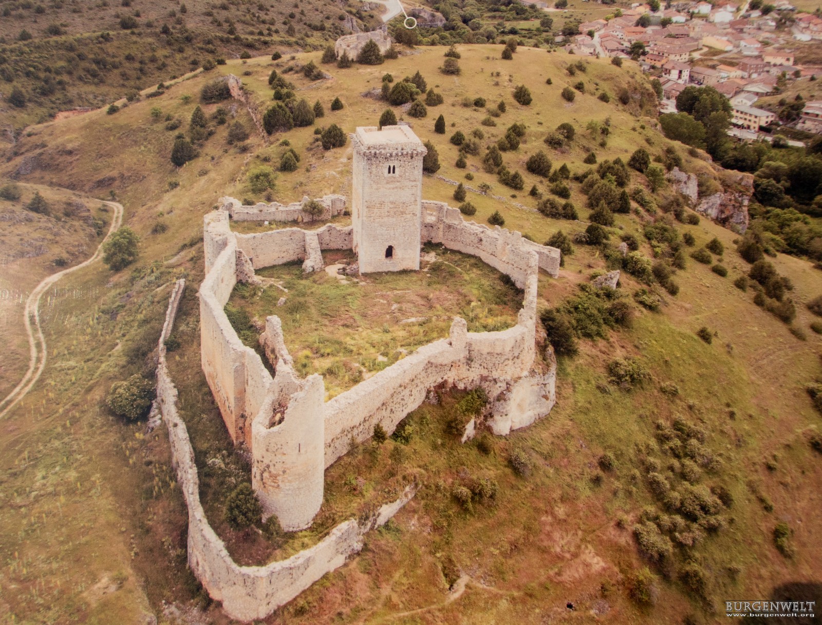 1302 - Die Burg geht an den Bischof von Osma über, Juan Perez de Ascarón. Dieser lässt den Kern der Burg mit Waffenhof, Bergfried, Vormauer und Graben errichten. 15. Jh. - die Burg wird an die Waffenentwicklung angepasst, mit einer neuen umlaufenden Zwingermauer vor dem äußeren Tor mit Fallgitter, der gegenläufigen Rampe zur einziehbaren Brücke und weiteren Wohngebäuden. 16. Jh. - der Bergfried erhält eine neue Fassade, ein Kreuzrippengewölbe, sein Doppelfenster und die Wasserspeier mit Figurendarstellungen. Eine weiterer Torbau wird zwischen Burgdorf und Burg an deren Westseite errichtet. Die Burg wird zur Sommerresidenz der Bischöfe von Osma, zum Teil aber auch als bischöflicher Kerker genutzt 17. Jh. - ein Brand verwüstet Teile der Burg, danach werden Teile der Mauern renoviert und das Tor zugemauert. 18. Jh. - die Burg und das Dorf innerhalb der Vormauer werden aufgegeben. |